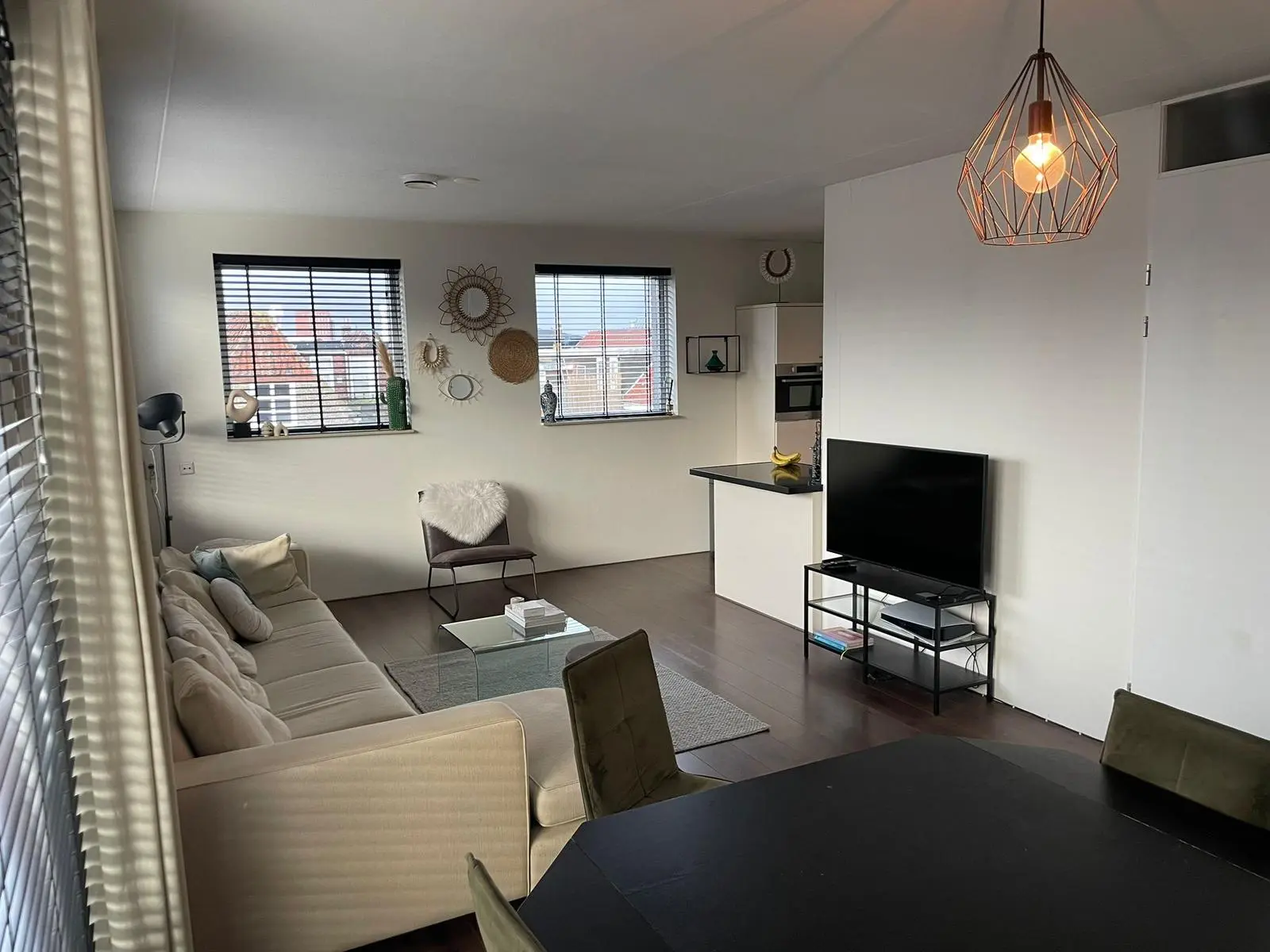 ?? Ruime woonkamer met veel natuurlijk licht en een moderne open keuken.