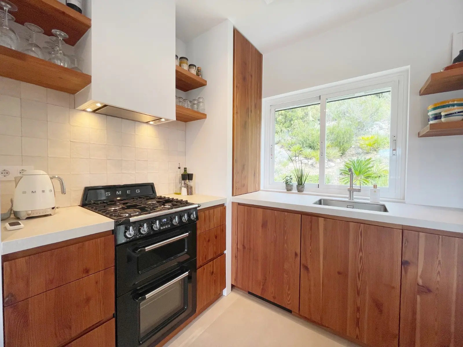 Welkom bij deze volledig in ibiza-stijl gerenoveerde in villa in Jalon, welke in 2023 een kwalitatief hoogwaardige renovatie heeft ondergaan. Werkelijk alles is vernieuwd: van wanden, plafonds en vloeren tot badkamers, schilderwerk en installaties. De woning straalt luxe, comfort en kwaliteit uit en is tot in de puntjes verzorgd. De woning is voorzien van alle moderne gemakken zoals airconditioning in alle ruimtes, horren, ledverlichting (Wever & Ducré en inbouwspots) en een nieuwe elektrische installatie met uitgebreide groepenkast. De recente Vaillant Eco Tec Pure cv-ketel (2023) zorgt via radiatoren voor een efficiënte verwarming.