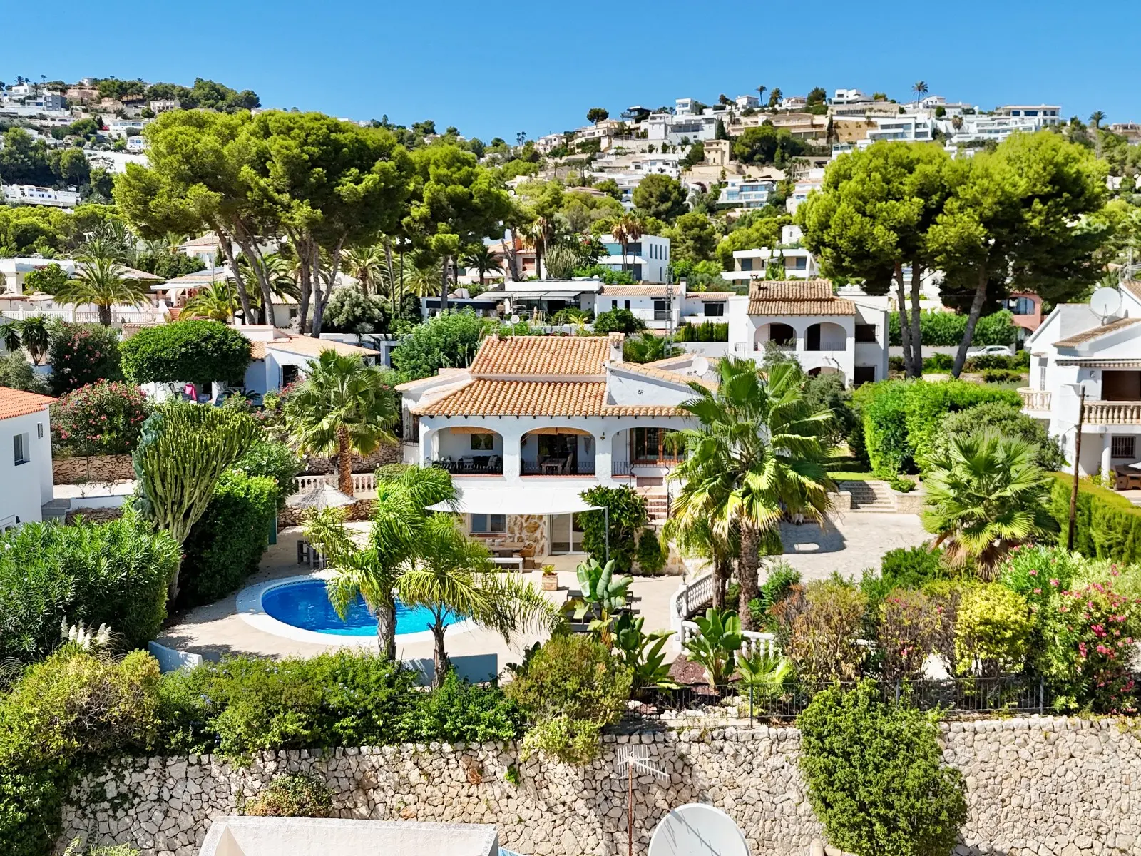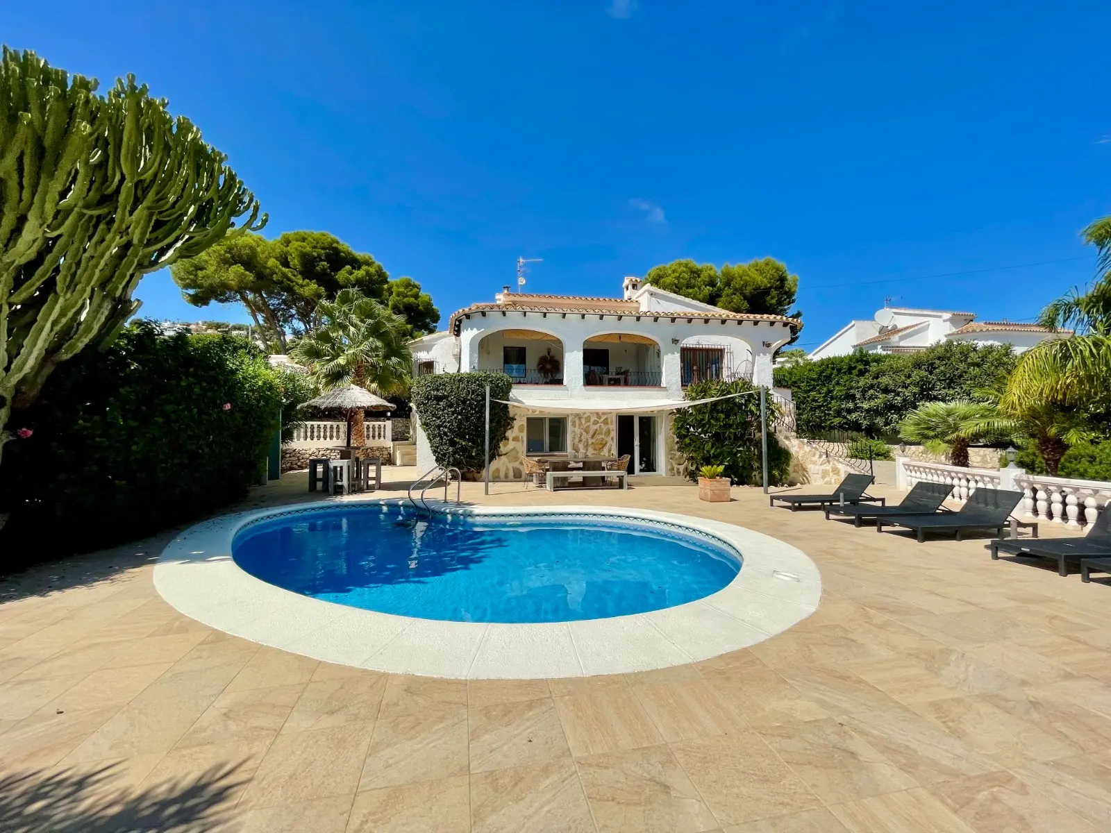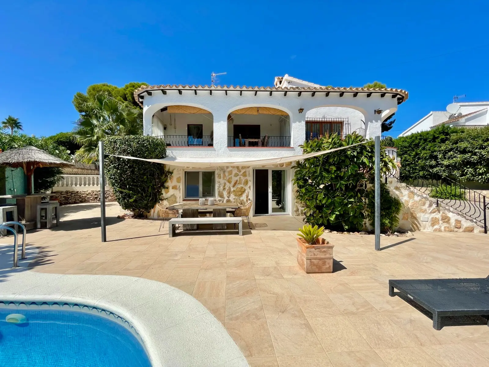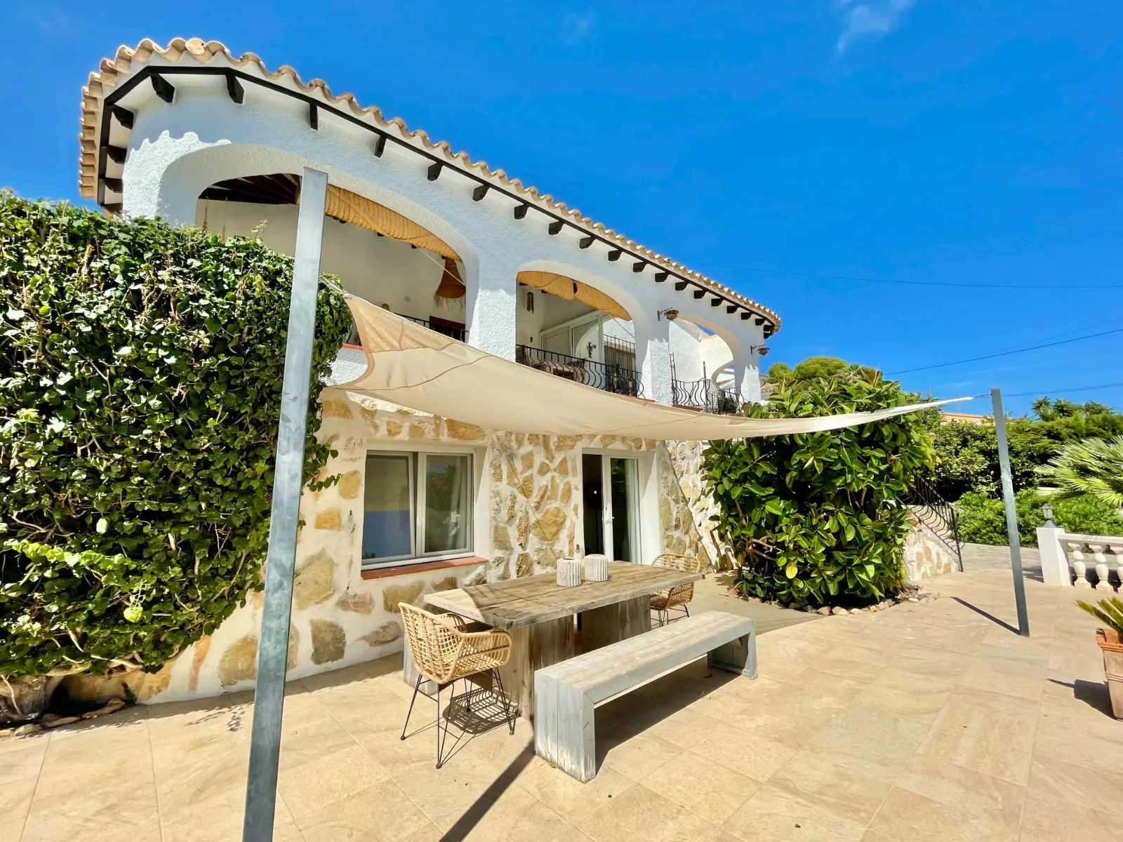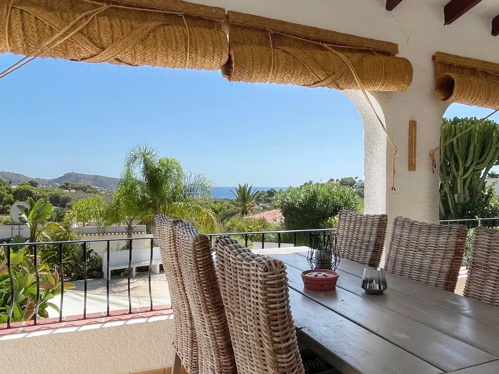 Gezellig ingerichte villa op een ruim kavel gelegen in het lagere gedeelte van de populaire wijk Benimeit met een schitterend zicht op zowel de zee als op het centrum van Moraira. De woning beschikt over een woonkamer die verbonden is met een leuke naya (overdekt terras) en een open terras, die beide over de tuin met het niervormige zwembad uitkijken. In de onderbouw een geheel separaat gastenverblijf en een ruime garage. Binnen 6 minuten zit u in hartje centrum Moraira en op korte afstand vinden we een klein commercieel centrum met o.a. een supermarkt (met veel Nederlandse producten) die 7 dagen per week geopend is.
