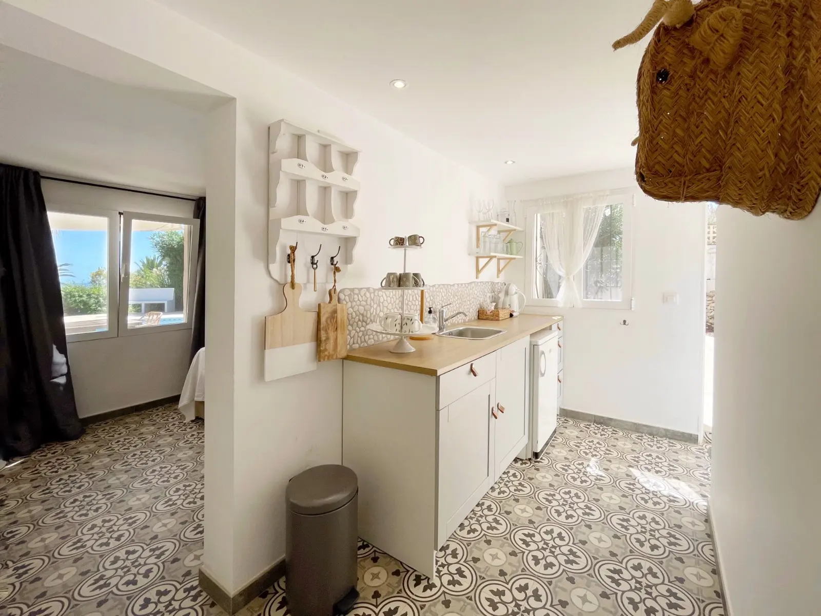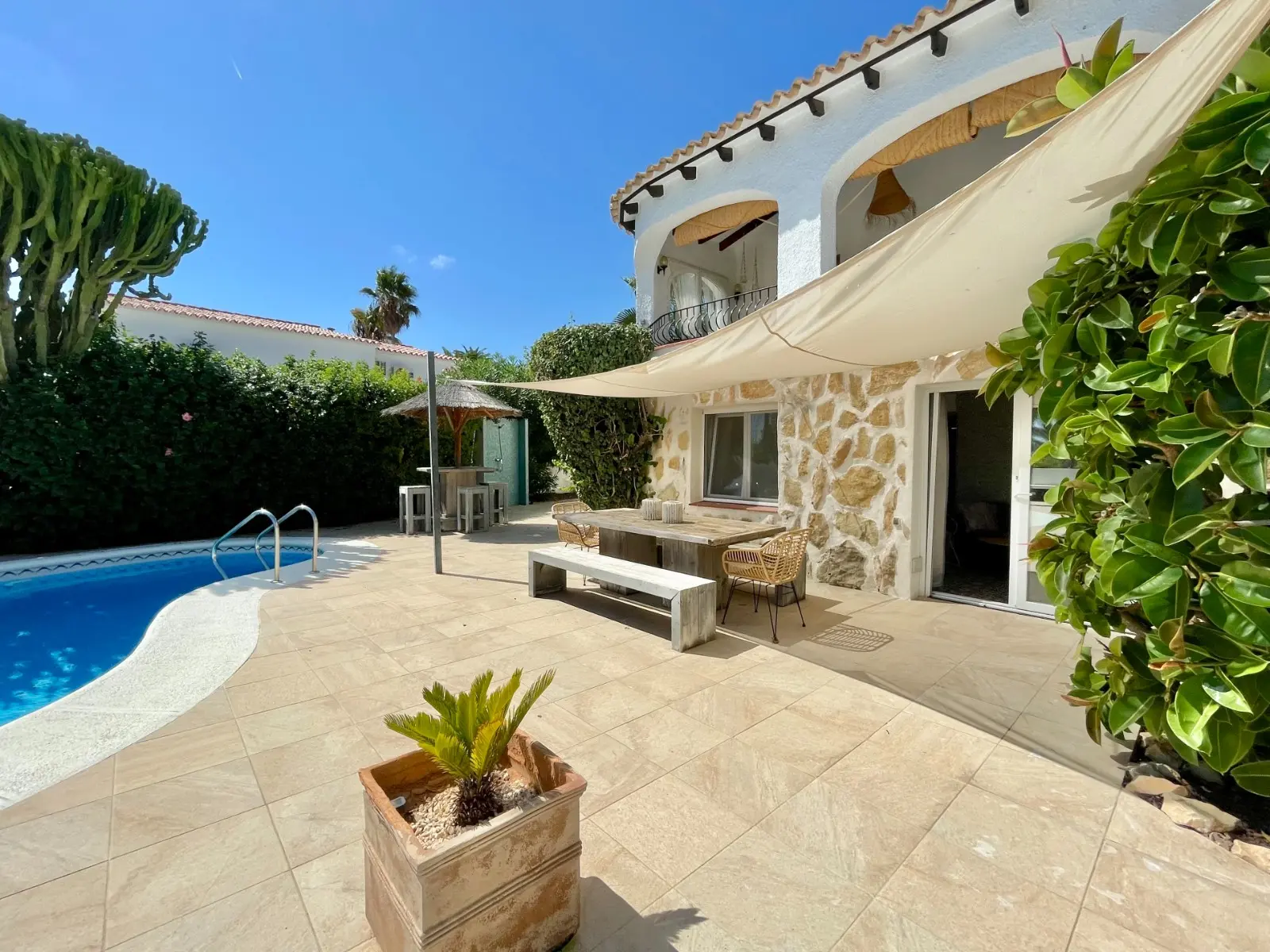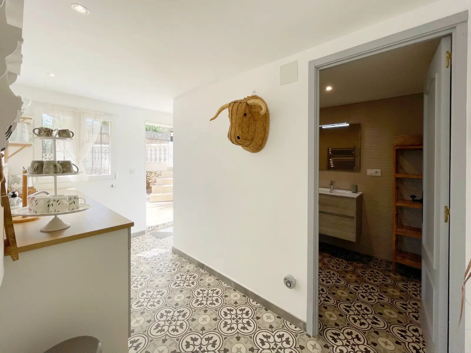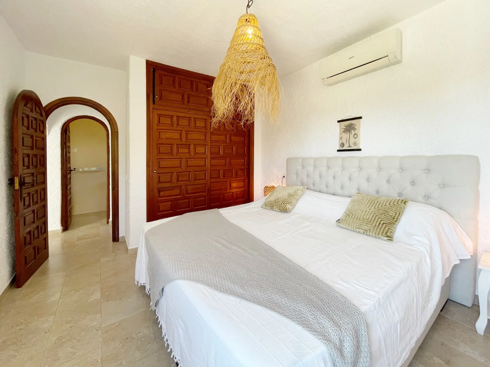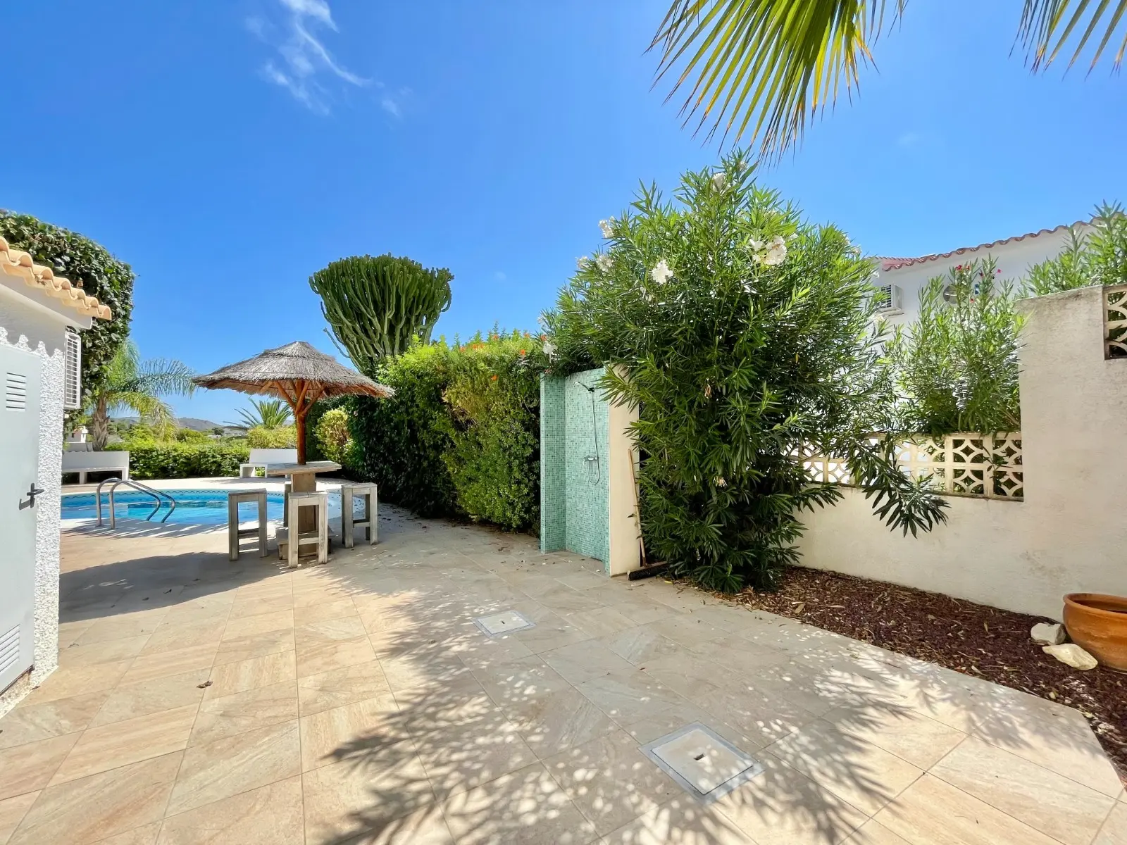 Gezellig ingerichte villa op een ruim kavel gelegen in het lagere gedeelte van de populaire wijk Benimeit met een schitterend zicht op zowel de zee als op het centrum van Moraira. De woning beschikt over een woonkamer die verbonden is met een leuke naya (overdekt terras) en een open terras, die beide over de tuin met het niervormige zwembad uitkijken. In de onderbouw een geheel separaat gastenverblijf en een ruime garage. Binnen 6 minuten zit u in hartje centrum Moraira en op korte afstand vinden we een klein commercieel centrum met o.a. een supermarkt (met veel Nederlandse producten) die 7 dagen per week geopend is.