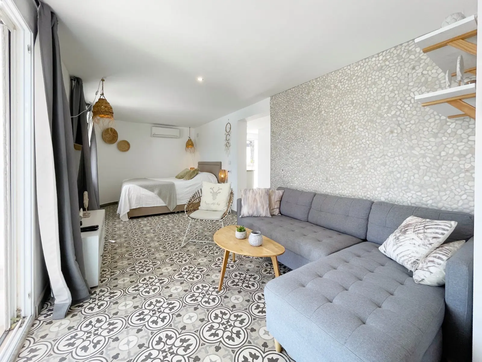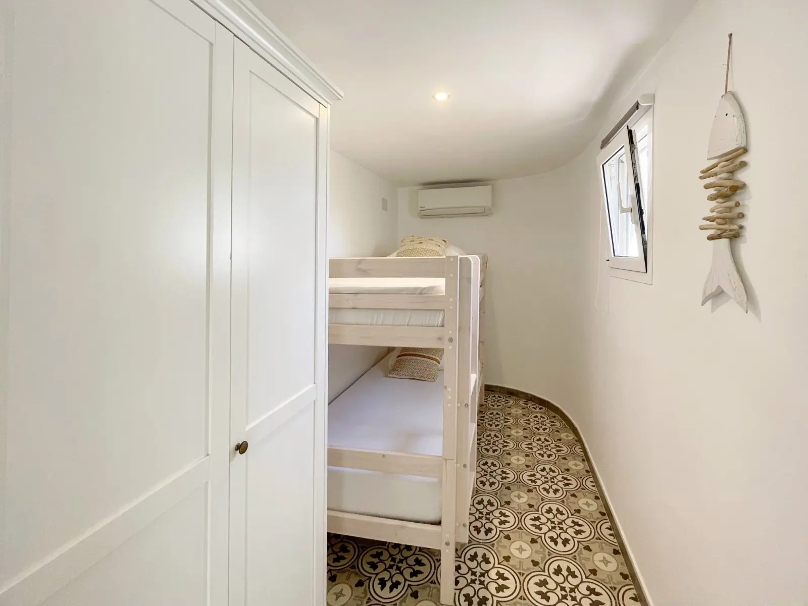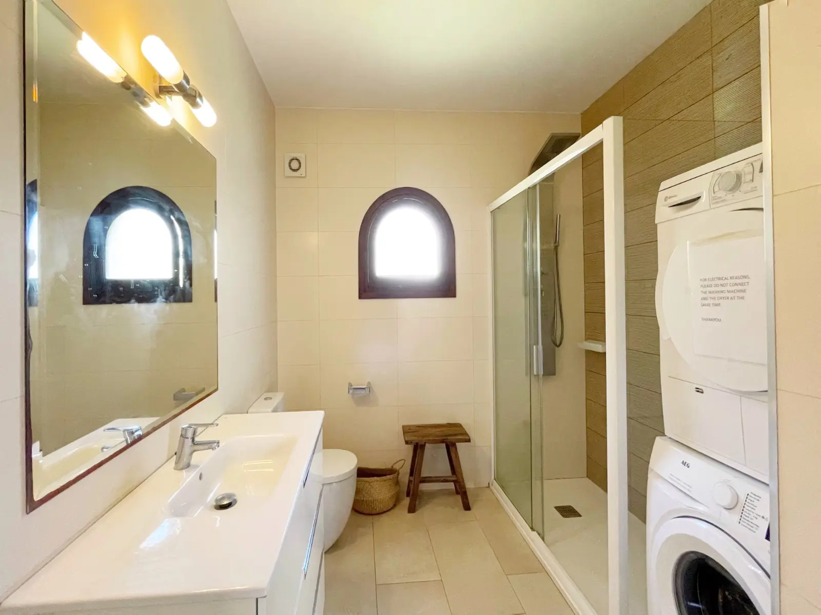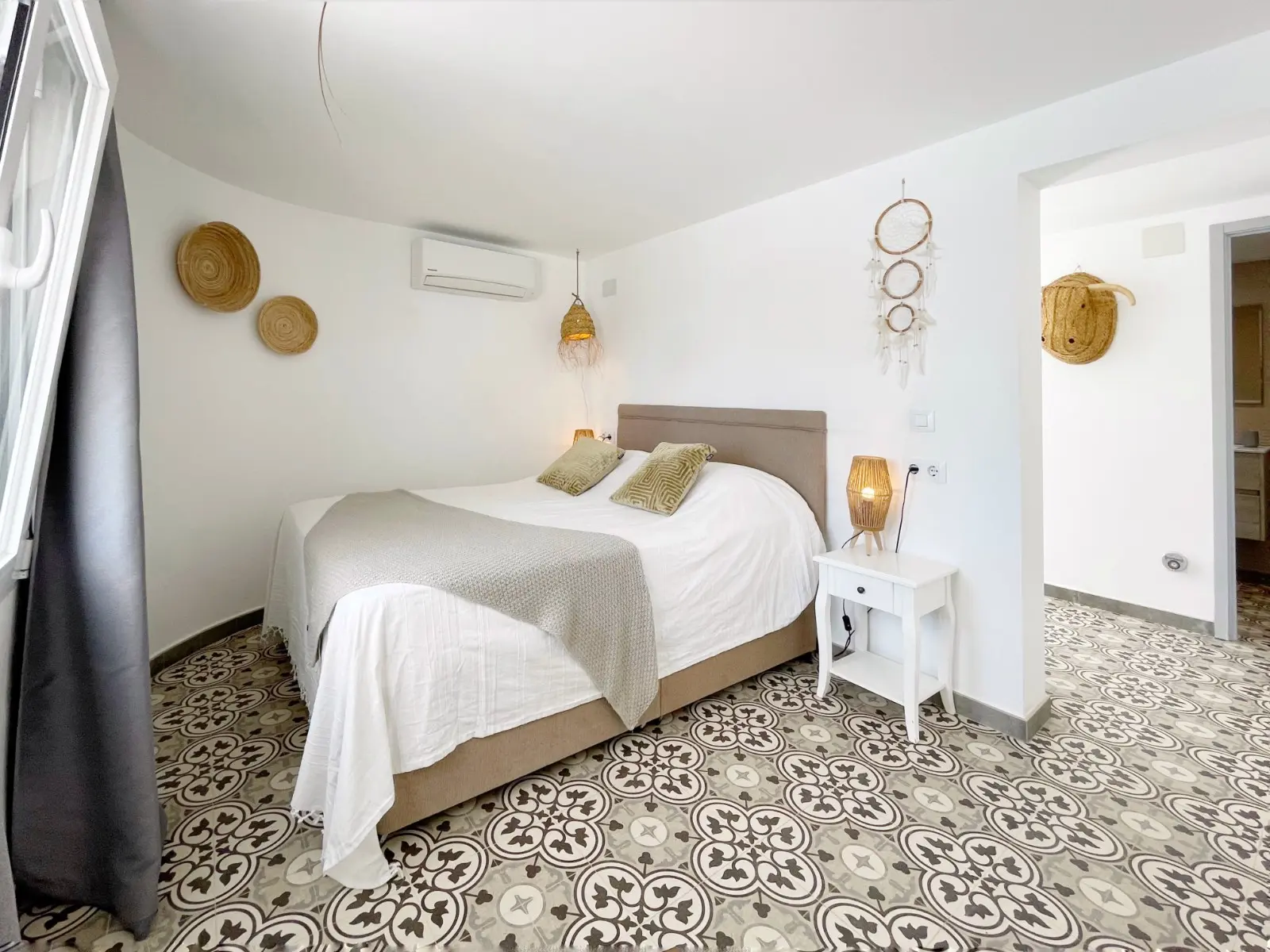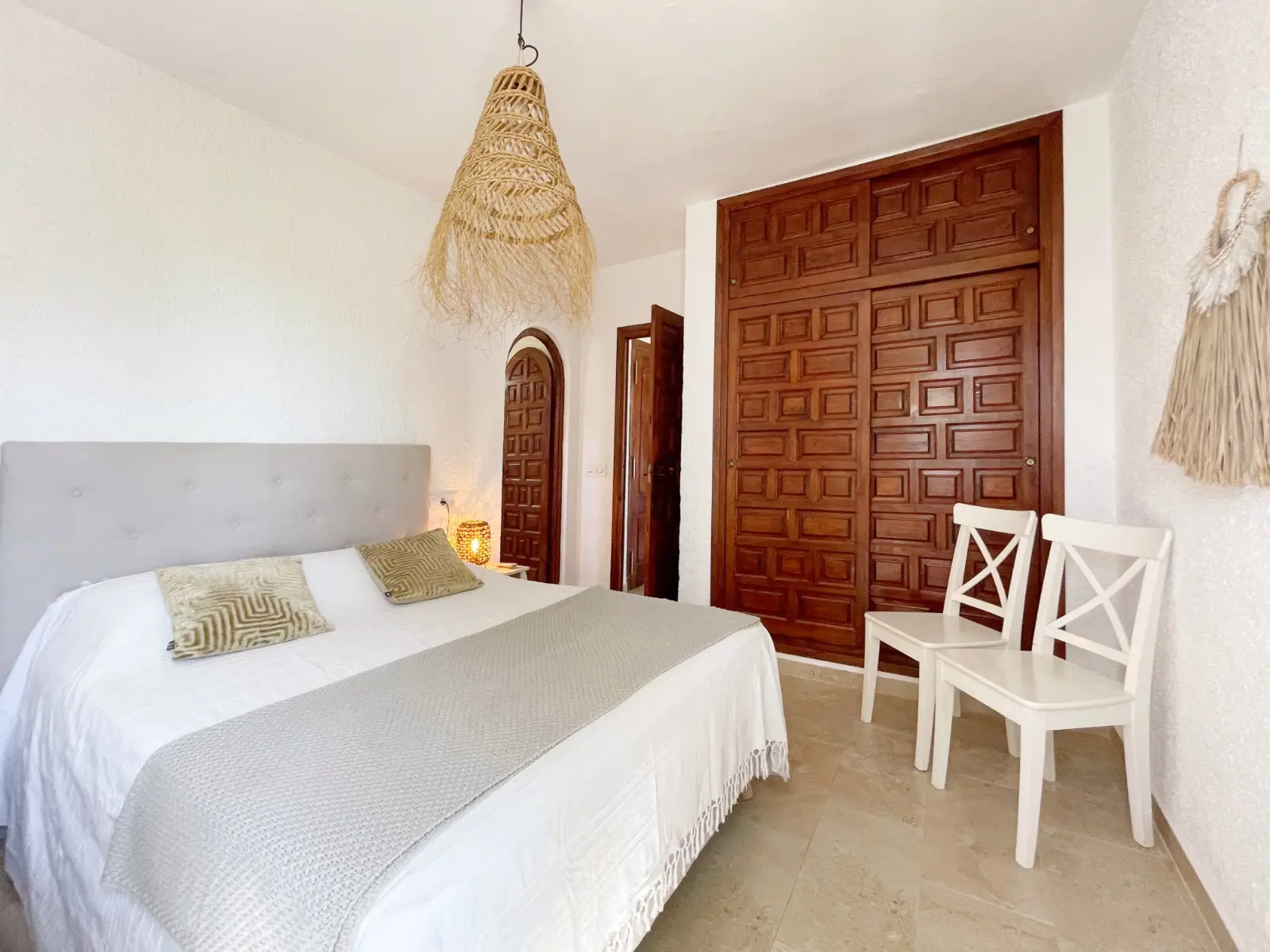 De villa is gelegen op een ruim zeer vlak kavel van 1.181 M2, is toegankelijk via een automatische poort en beslaat 2 verdiepingen. Vanaf beide niveaus biedt de woning een schitterend (zee)zicht. De woonverdieping is bereikbaar via een trap naar de voordeur die toegang geeft tot een ruime toegangshal. Van hieruit bereiken we een ruime woonkamer met open keuken, 2 slaapkamers en 2 badkamers. De woonkamer loopt over in de naya en een gedeelte open terras, vanaf beide niveaus een schitterend zicht op zowel zee, groen, bergen en centrum Moraira. In de onderbouw vinden we naast een garage, een in 2019 geheel gerenoveerd zelfstandig gastenverblijf bestaande uit een keukentje, badkamer en een kamer met loungehoek en slaapgedeelte. Deze kamer is via schuifdeuren direct verbonden met het ruime zwembadterras, omgeven door een groene oase aan volwassen bomen en struiken. Daarnaast nog een kleine kamer waar nu d.m.v. een stapelbed nog extra slaapgelegenheid is gecreëerd. Naast de garage biedt het perceel voldoende ruimte om nog meerdere auto’s te parkeren.