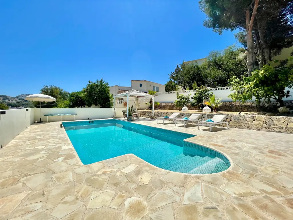 Goed gerenoveerde villa te koop in de wijk La Sabatera in Moraira. De villa beslaat 2 verdiepingen, waarbij de woonverdieping op 1 niveau ligt met het zwembad. De woonverdieping, bestaat uit een ruime woonkamer, met een mooi open uitzicht, een van alle gemakken voorziene open keuken, 2 slaapkamers en 1 badkamer waarbij een van de slaapkamers momenteel geheel in gebruik is als kleedkamer voorzien van een ruime wastafel met 2 waskommen. Deze kamer kan natuurlijk weer eenvoudig omgevormd worden tot volwaardige 2 persoons slaapkamer. In de onderbouw vinden we een ruim gastenverblijf bestaande uit woon/eetkamer met een eigen keukentje, aparte slaapkamer, een badkamer en beschikt over een eigen terras. Op dit niveau vinden we ook nog een ruime berging en een wat kleinere opslagruimte waarin zich ook de zwembadinstallatie bevind. De buitenruimte biedt diverse plekken om te relaxen in de uitgestrekte tuin met zeer ruim terras, verfraaid met 2 mooie houten pergola’s, een ruime gemetselde Ibiza stijl bank en een sfeervolle cabana bij het zwembad. Kortom voldoende plekken om, naar gewenst de zon of schaduw op te zoeken. Het zwembad en het terras zijn zeer recent geheel vernieuwd.