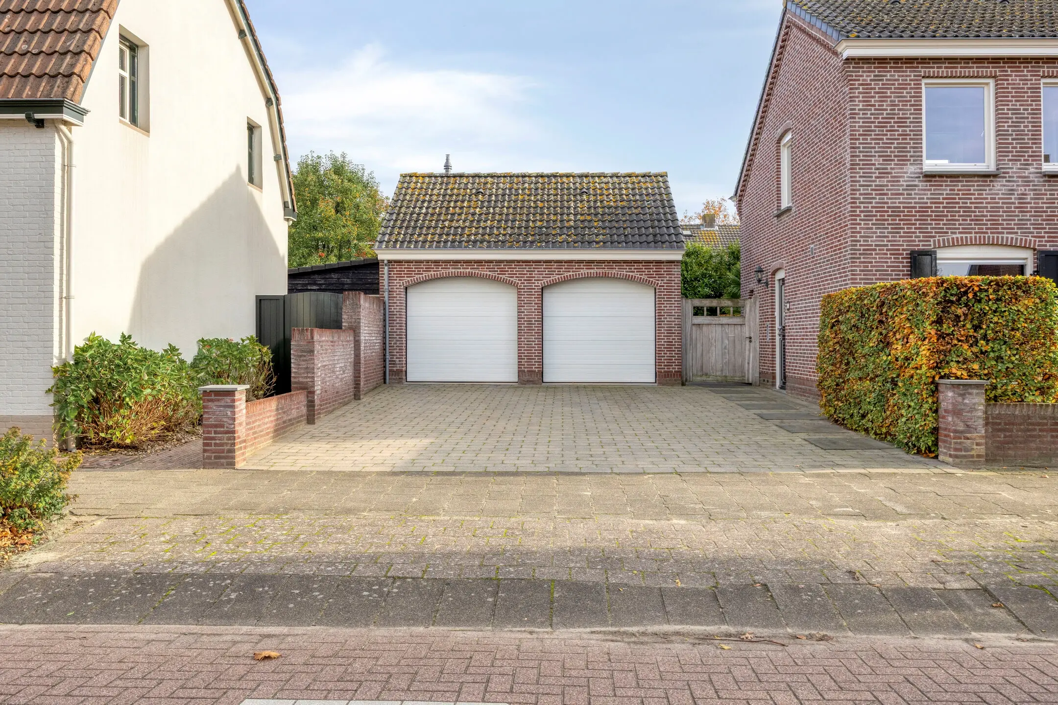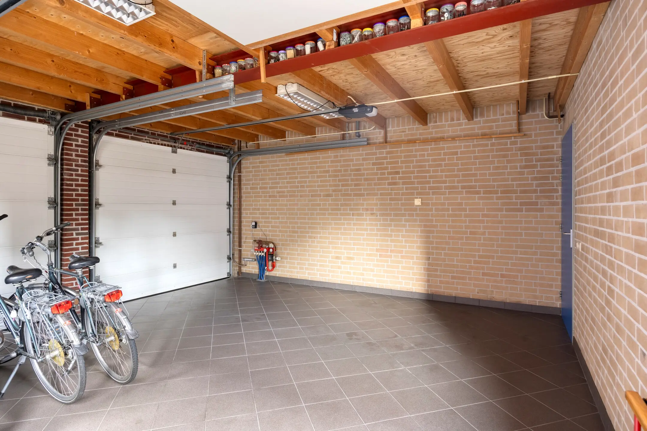 Vanuit de tuin zijn zowel de garage als het bijgebouw bereikbaar. De ruime geïsoleerde garage is voorzien van vloerverwarming, warm en koud water mengkraan en beschikt over dubbele elektrische garagedeuren. Via een vlizotrap is de bergzolder bereikbaar, waar een aparte cv-ketel is geplaatst. Aansluitend bevindt zich een extra ruimte met een keukenblok en aansluitingen voor een wasmachine en droger.