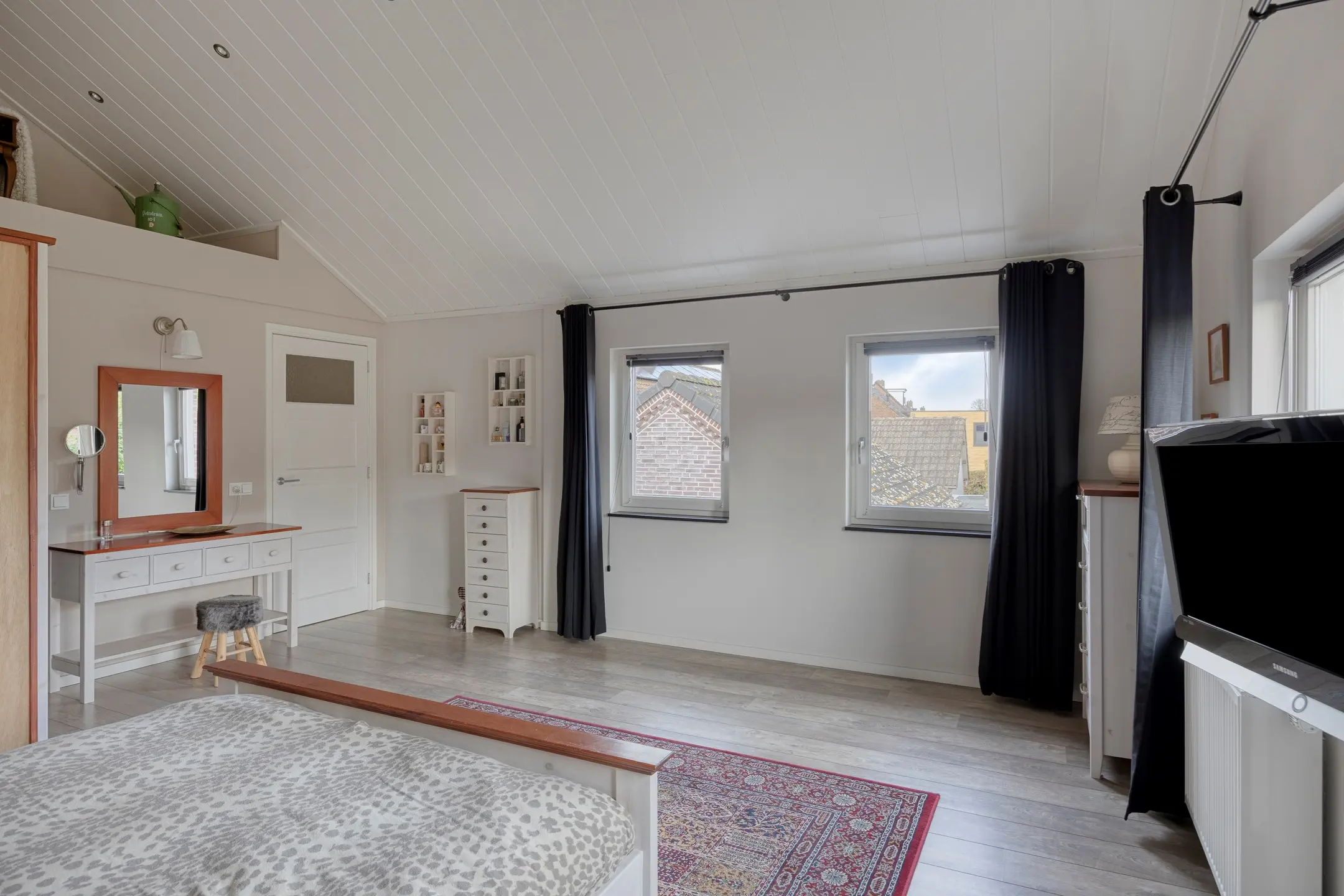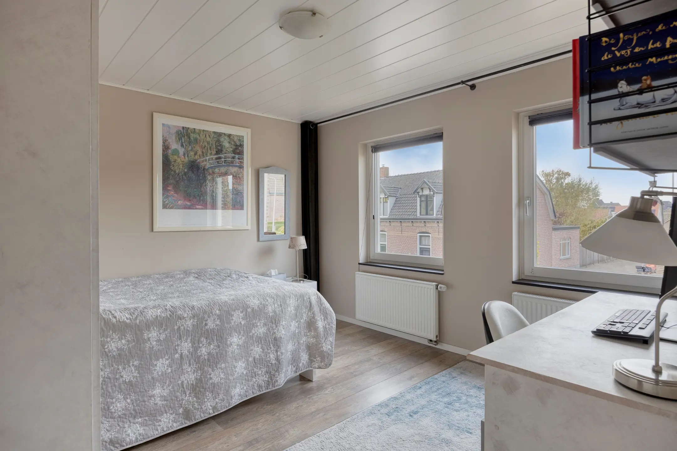 De drie slaapkamers zijn fijne, lichte ruimtes met een prettige sfeer. De slaapkamer aan de achterzijde is voorzien van een praktische inloopkast en voelt extra ruimtelijk aan dankzij de hoogte van het plafond.