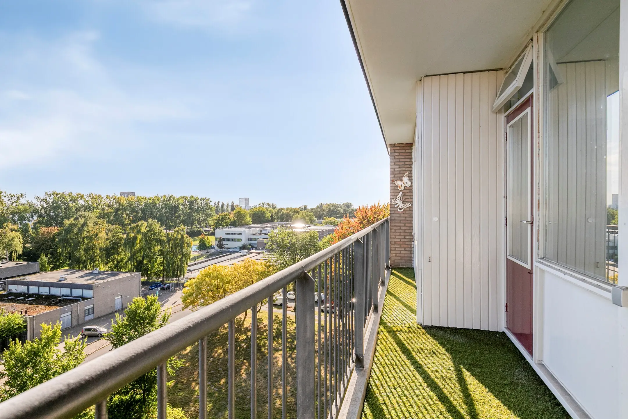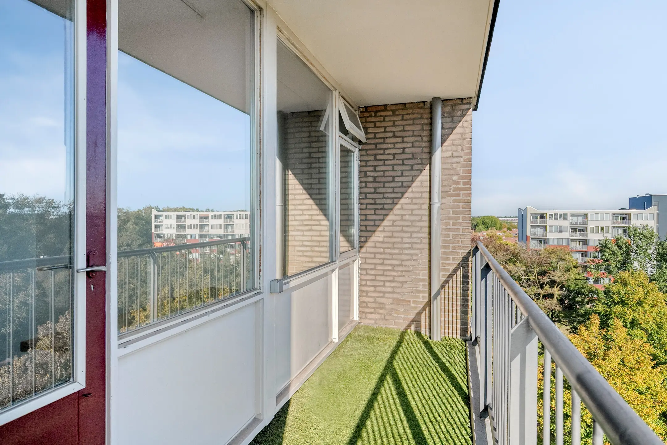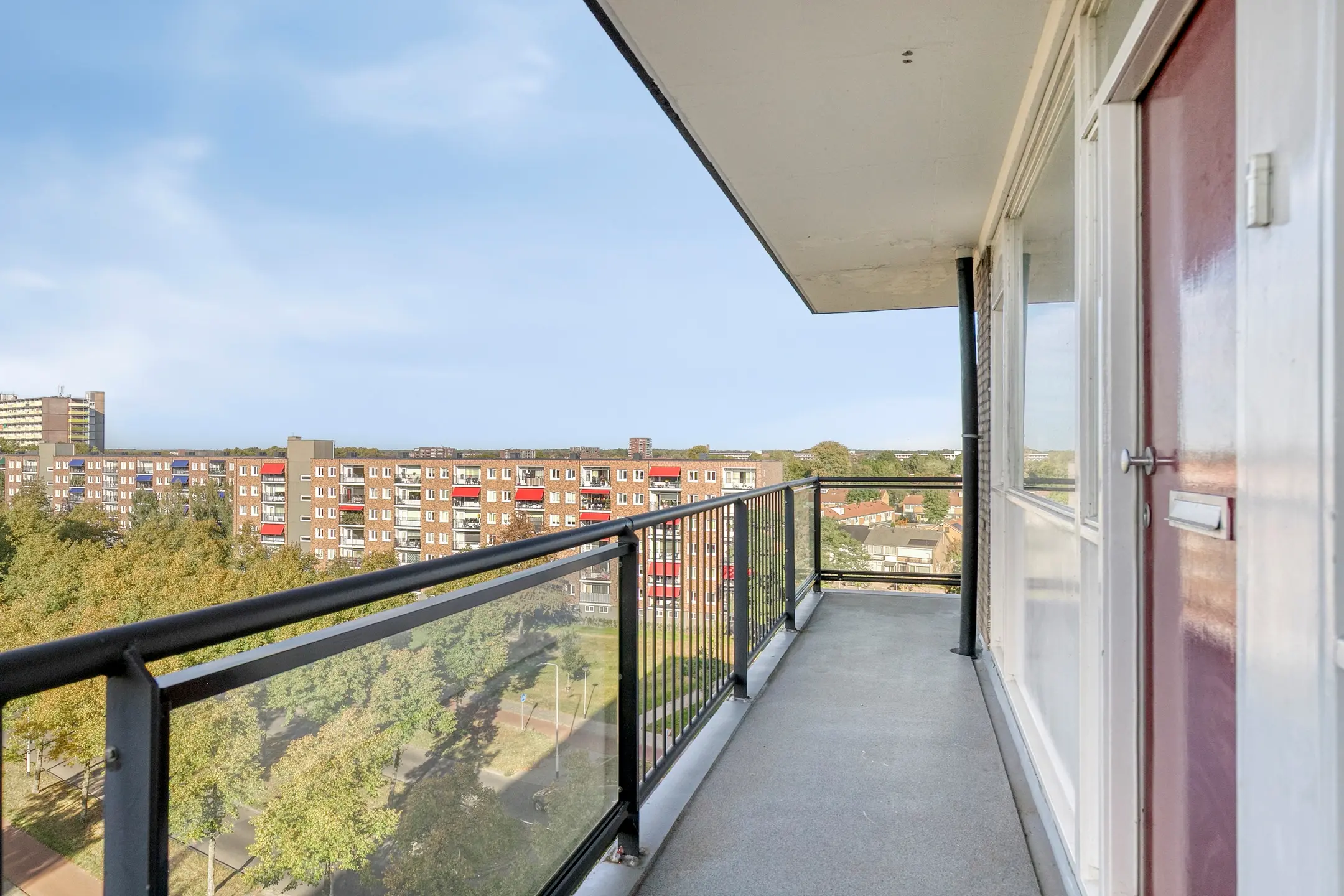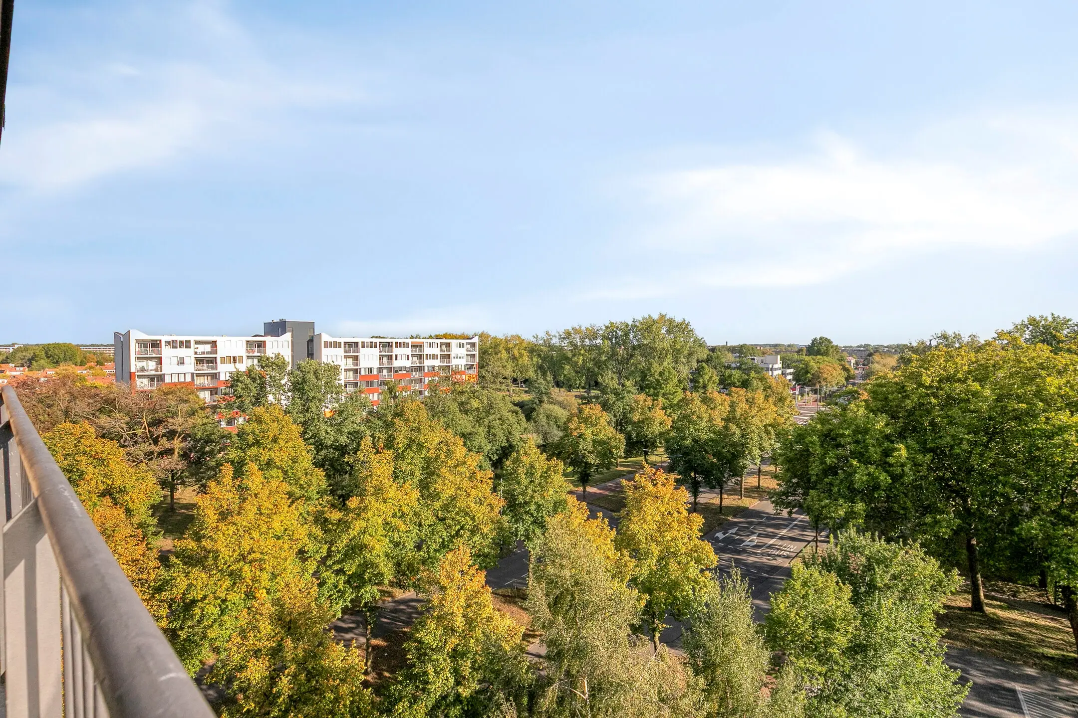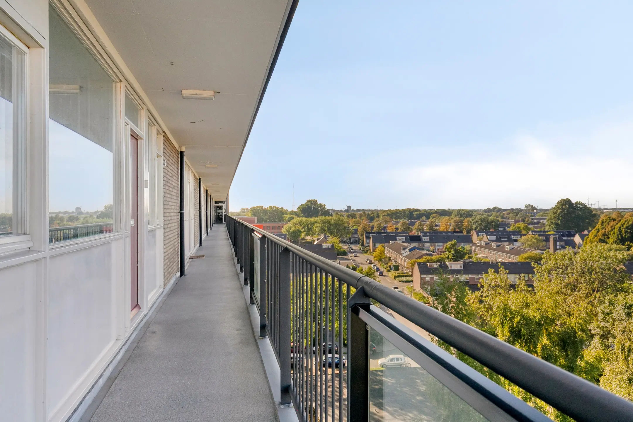 Dit appartement ligt aantrekkelijk aan het einde van de galerij en heeft dus geen "lopers" voor het appartement. De galerij gaat een stukje "om de hoek" met toegang tot de vlucht trap/route. Via de werkhoek is het zonnige balkon toegankelijk. Met vrij uitzicht over Breda en zonder bebouwing aan de overzijde, profiteert u van een unieke combinatie van rust, ruimte en absolute privacy.