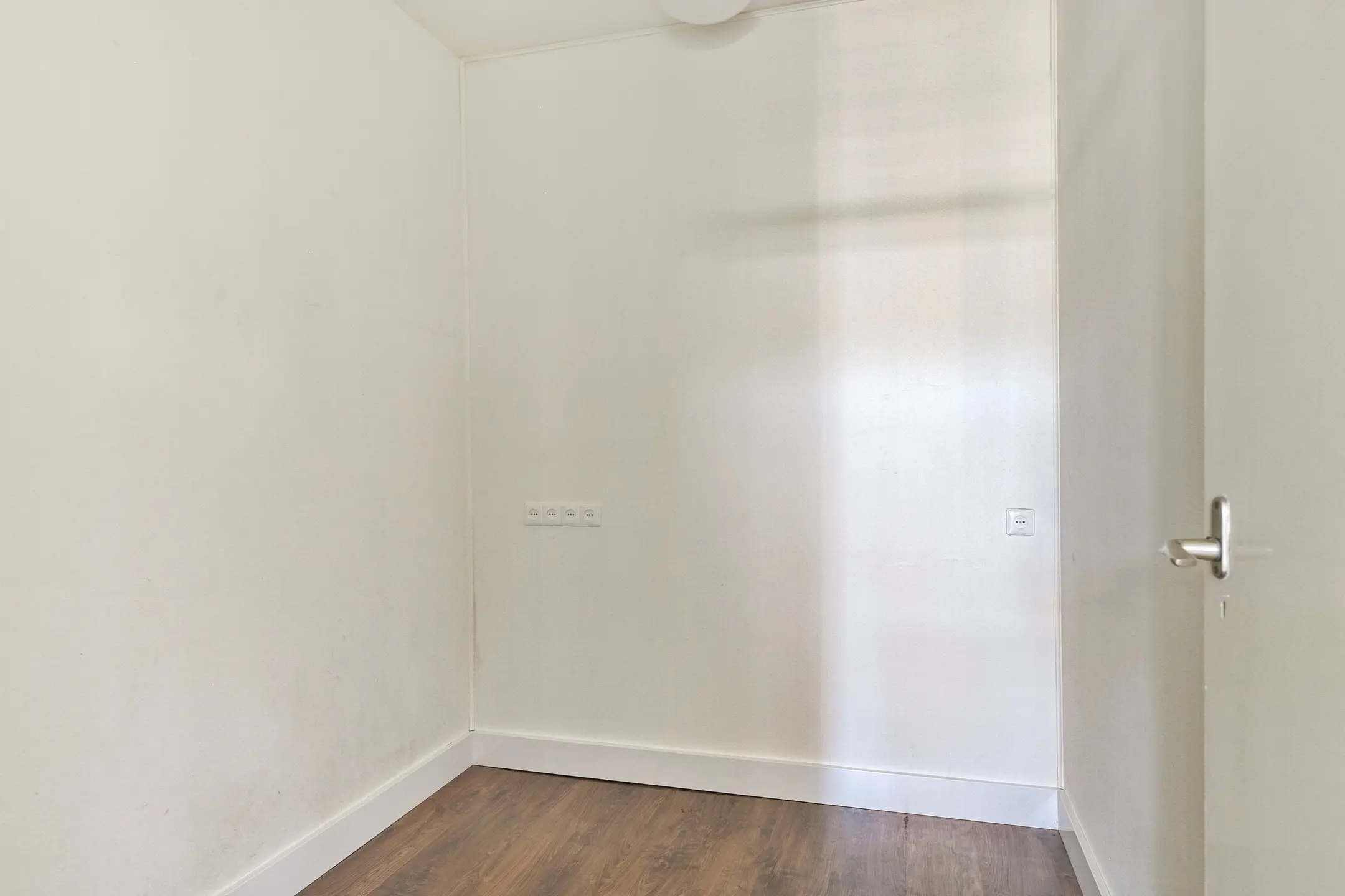 Dit appartement heeft overwegend een strakke behang wandafwerking, een recent geplaatste laminaatvloer (m.u.v. de badkamer & toilet), mooie hoge plinten en gestucte plafonds.