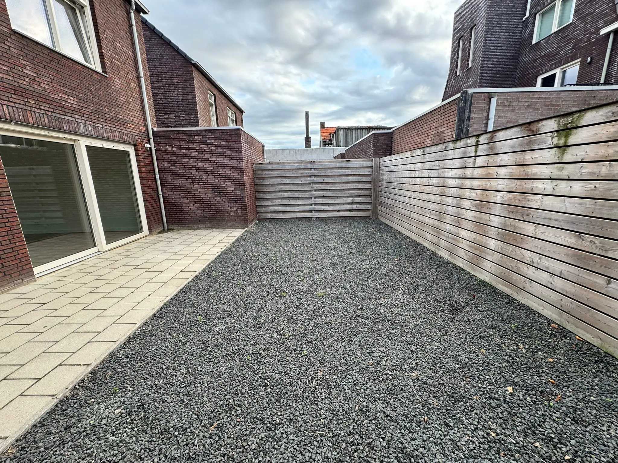 De tuin is momenteel voorzien van grind en bestrating, en biedt alle ruimte om geheel naar eigen smaak te worden ingericht.