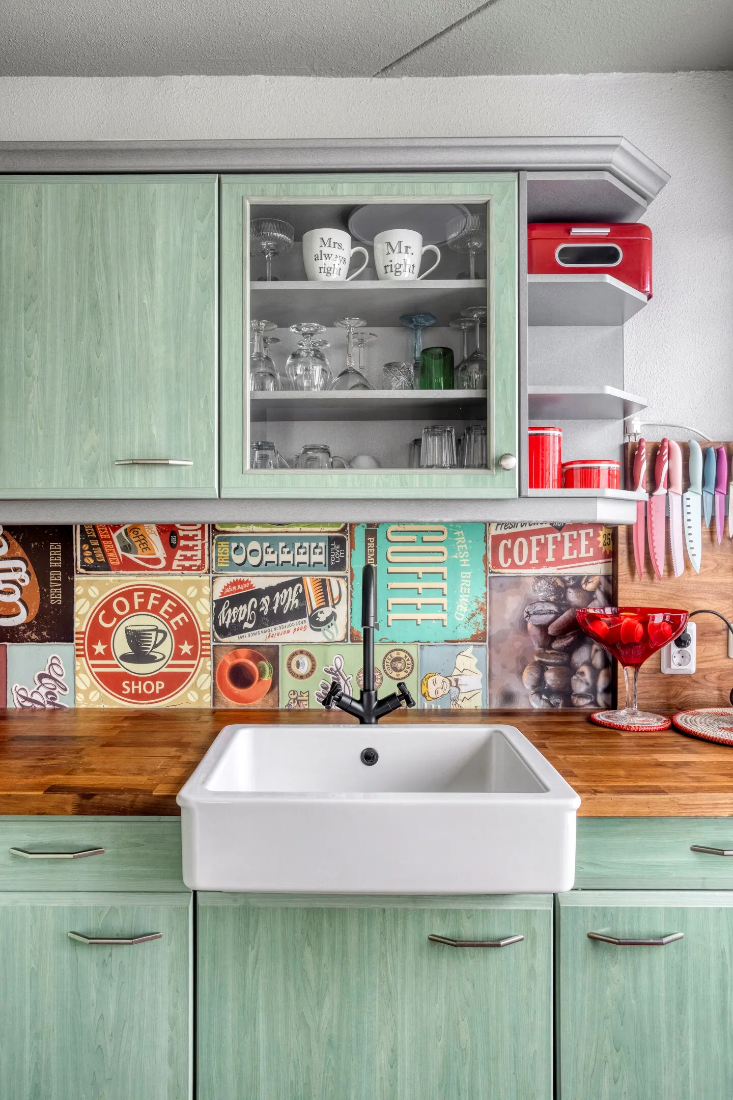 Het toilet is voorzien van een hoekfontein en een originele sfeer.