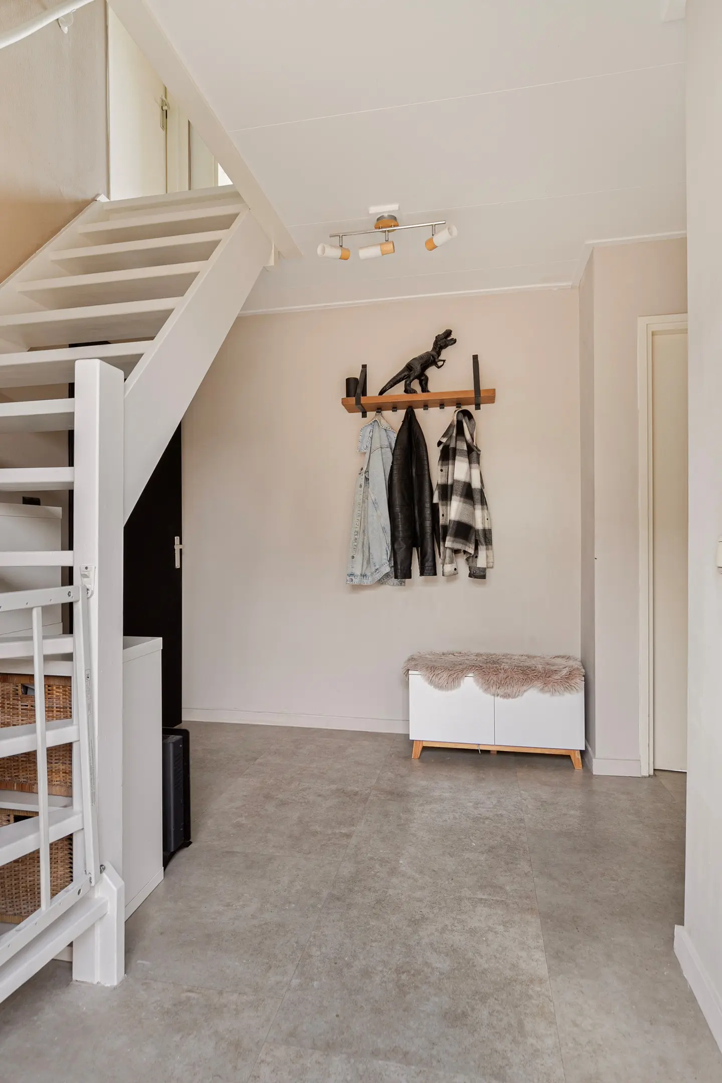 Bij binnenkomst ervaar je gelijk de sfeer en de afwerking van deze woning. Vanuit de ruime ontvangsthal is er toegang tot de woonkamer, de badkamer, slaapkamer, meterkast en toiletruimte.
