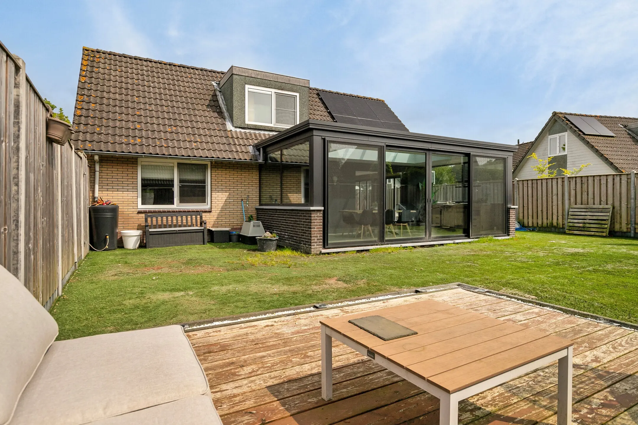 De tuin is voorzien van kunstgazon, een waterkraan en een zonneterras. Kortom; een heerlijke zonnige tuin om in te vertoeven.