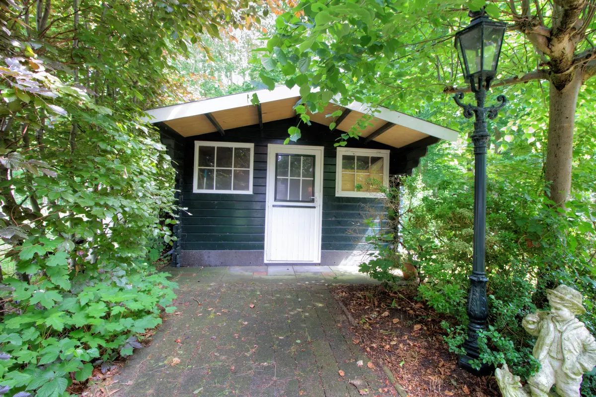In de tuin bevindt zich tevens een houten tuinhuis.