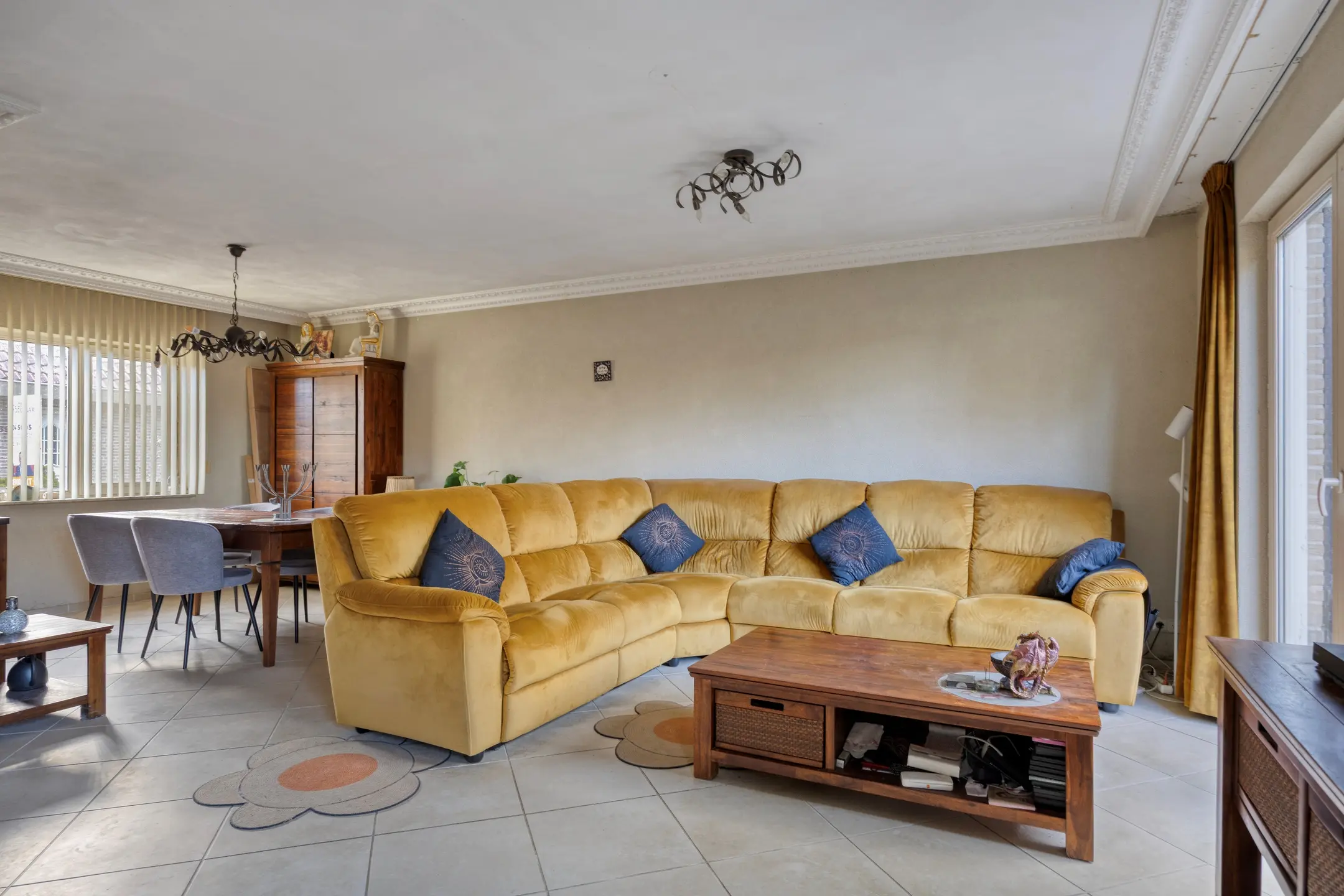- Royale woonkamer met meerdere raampartijen en tuindeuren die toegang bieden naar de tuin