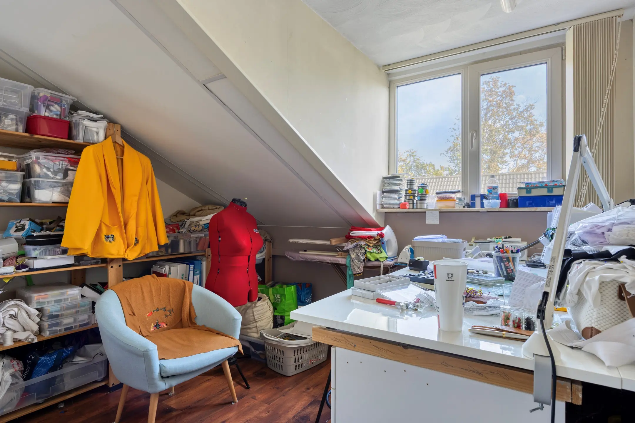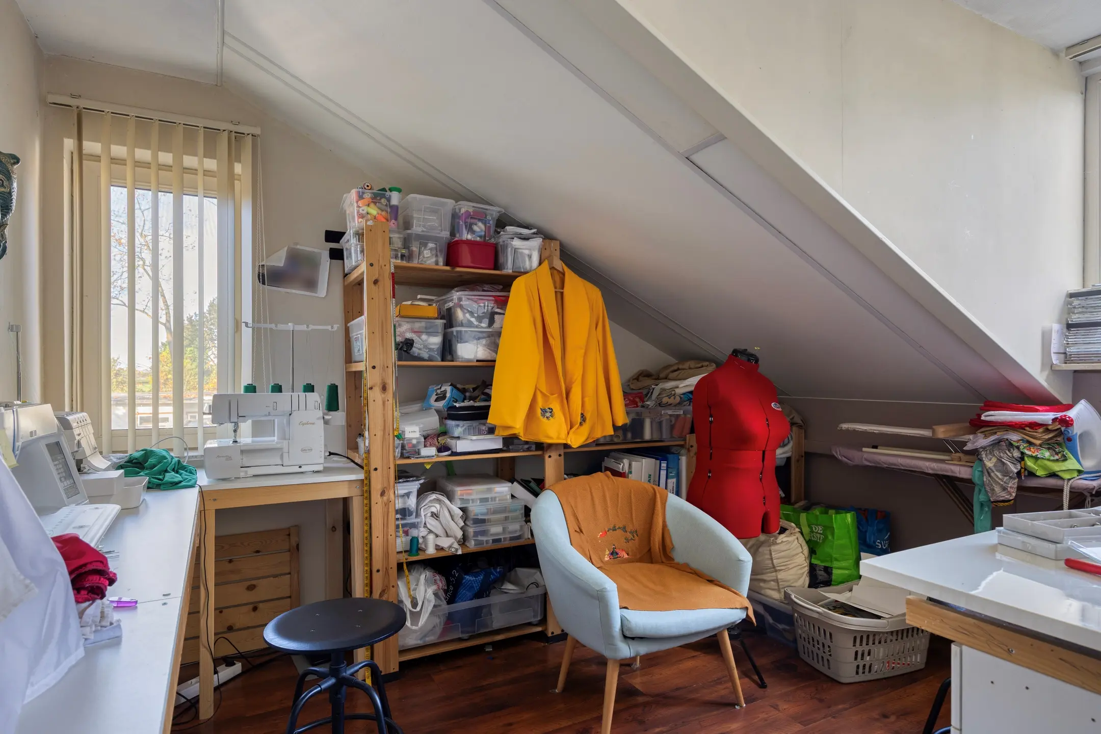 De ruimte is geheel betegeld en is voorzien van een dakkapel, met een raampartij dat zorgt voor een fijne lichtinval en voor natuurlijke ventilatie.