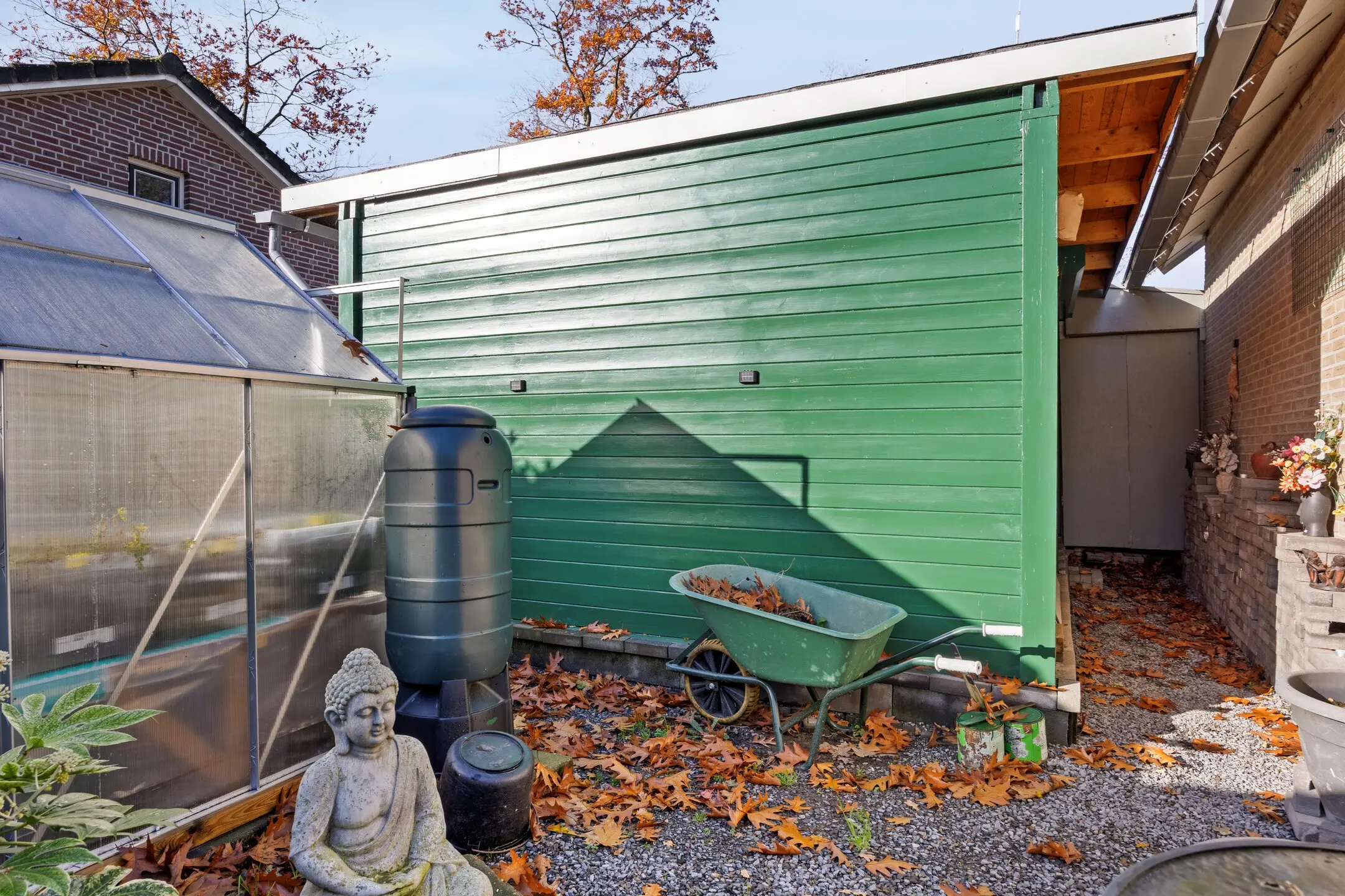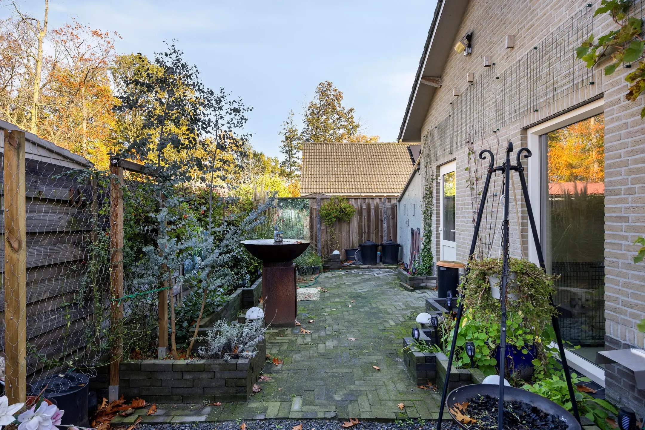 Pluspunt van deze woning is de separaat gelegen bijkeuken met toegang tot de tuin. Hier is tevens ruimte voor bijvoorbeeld de was-droogcombinatie. Tevens bevindt zich hier de waterpomp installatie.