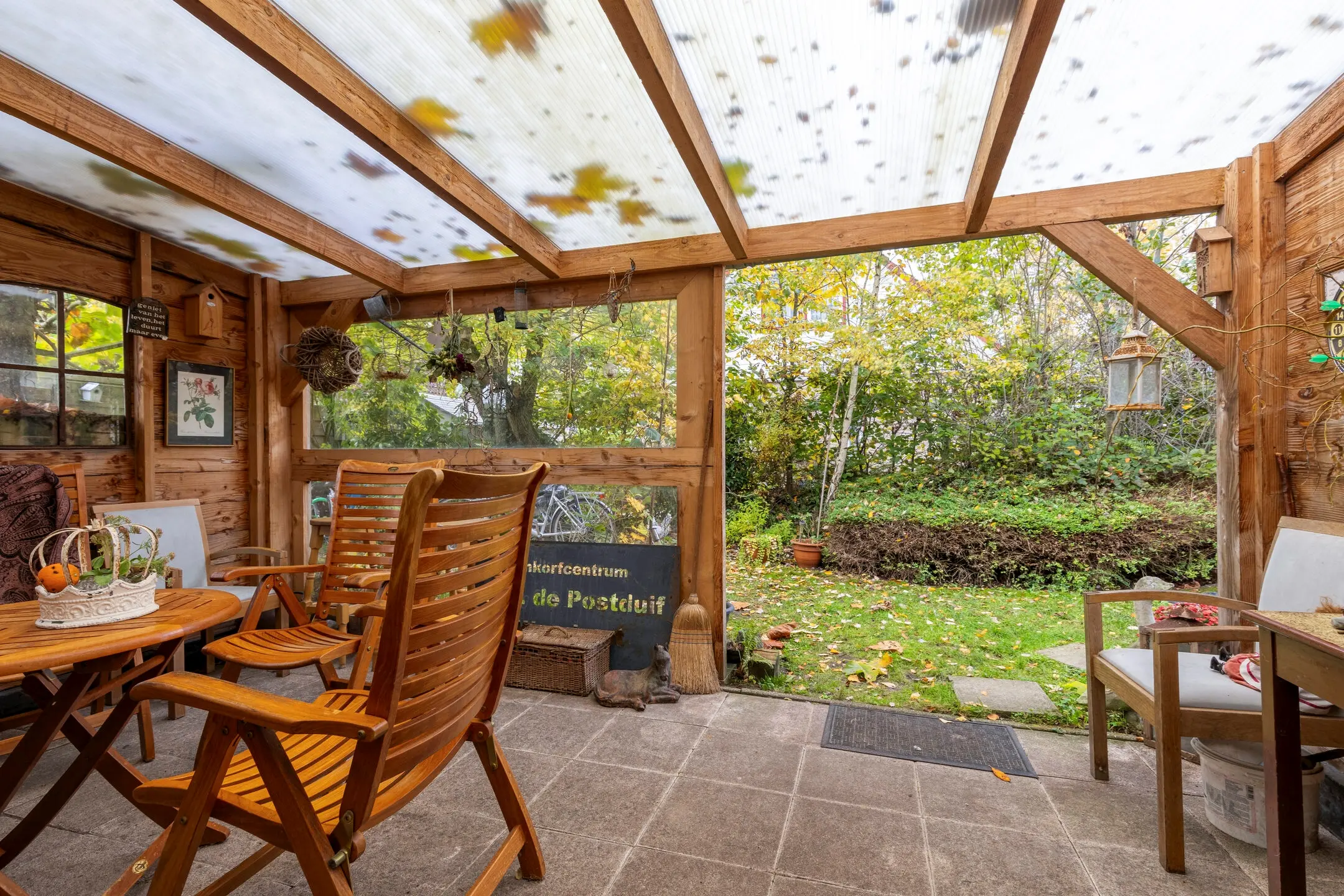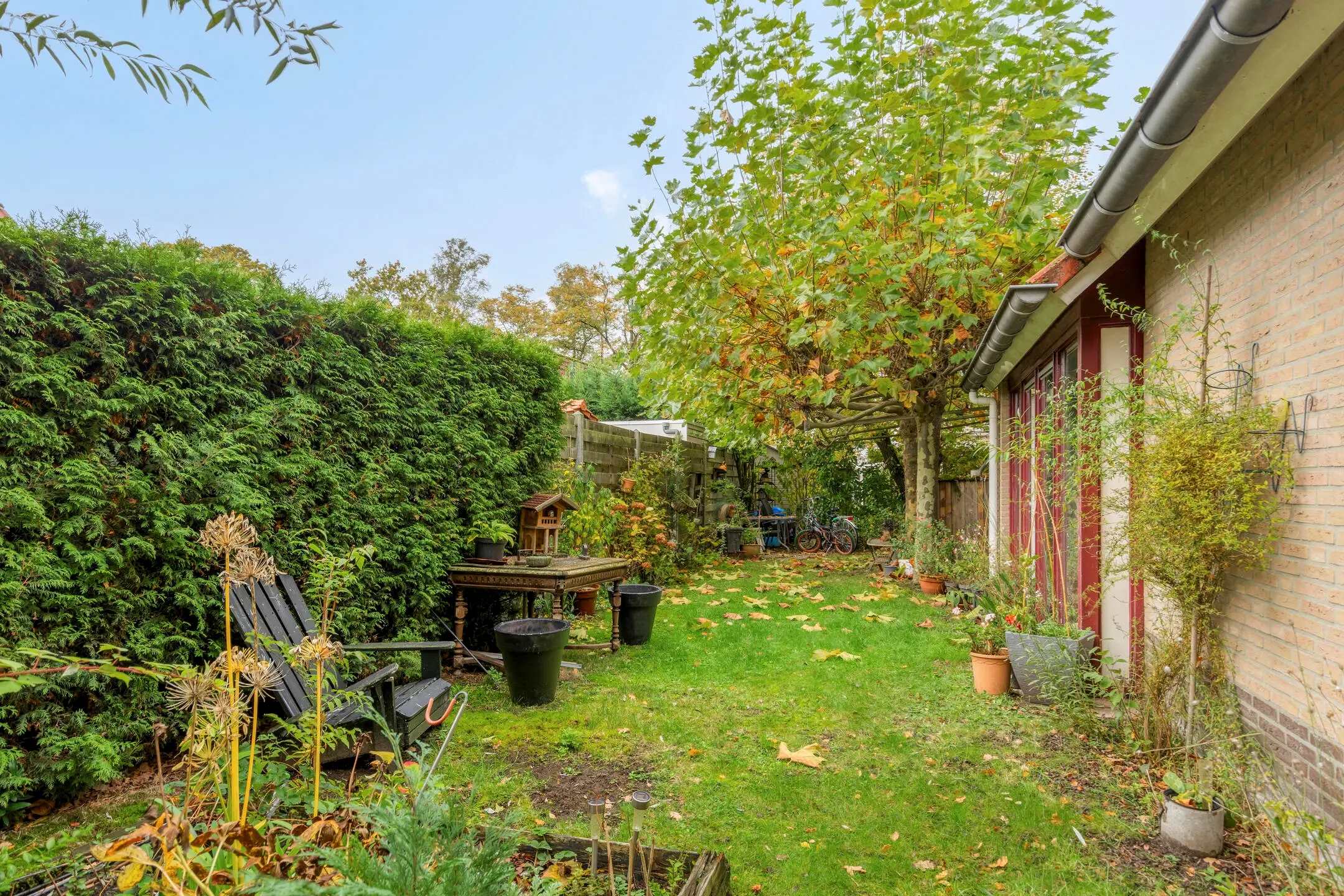 De tuin biedt veel privacy en heeft een overkapping, waar je elk jaargetijde heerlijk kunt genieten. Deze heerlijke tuin is voorzien van sierbestrating, vaste planten, gazon en biedt voldoende privacy.