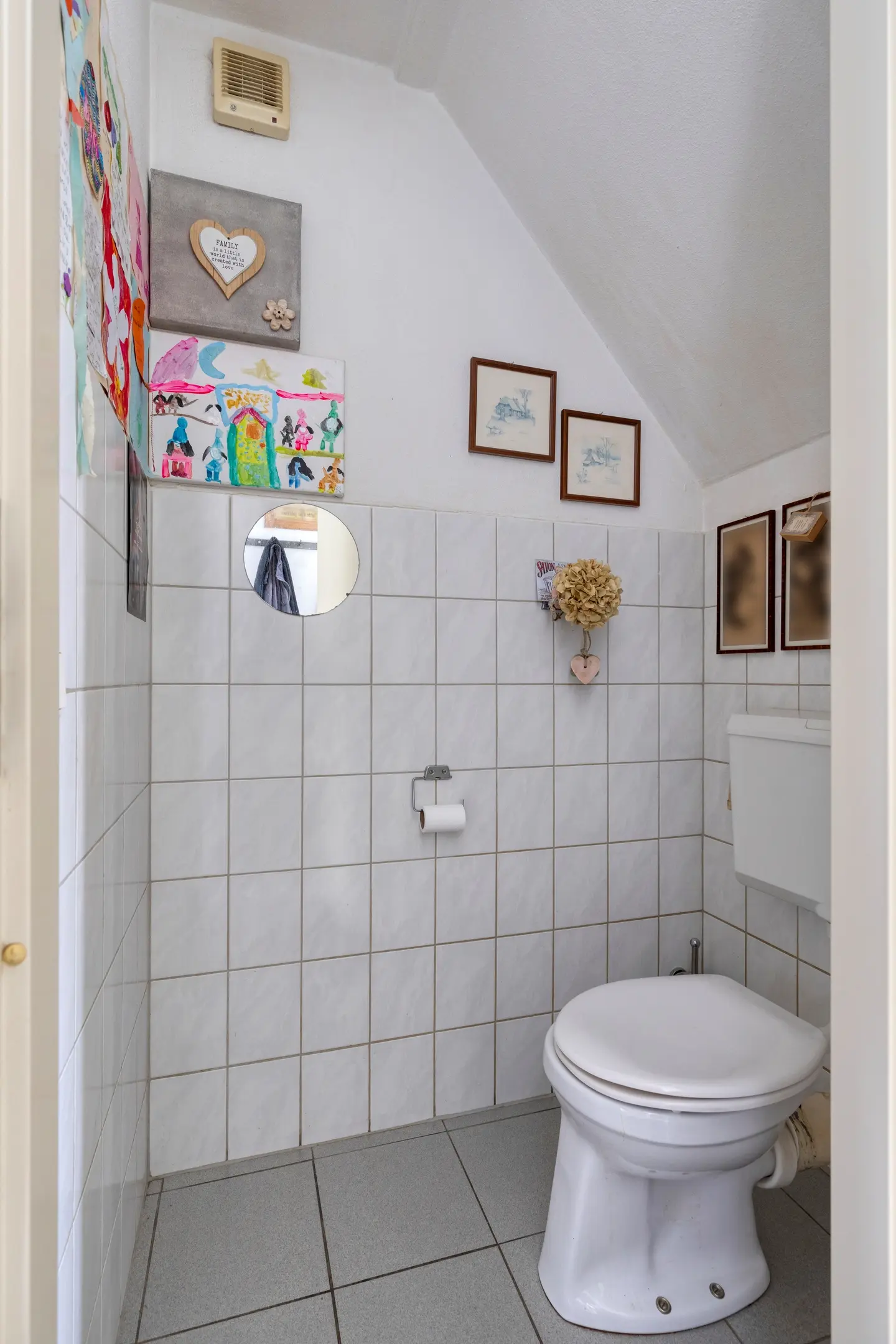 Het toilet is voorzien van een closet en de ruimte is deels betegeld.