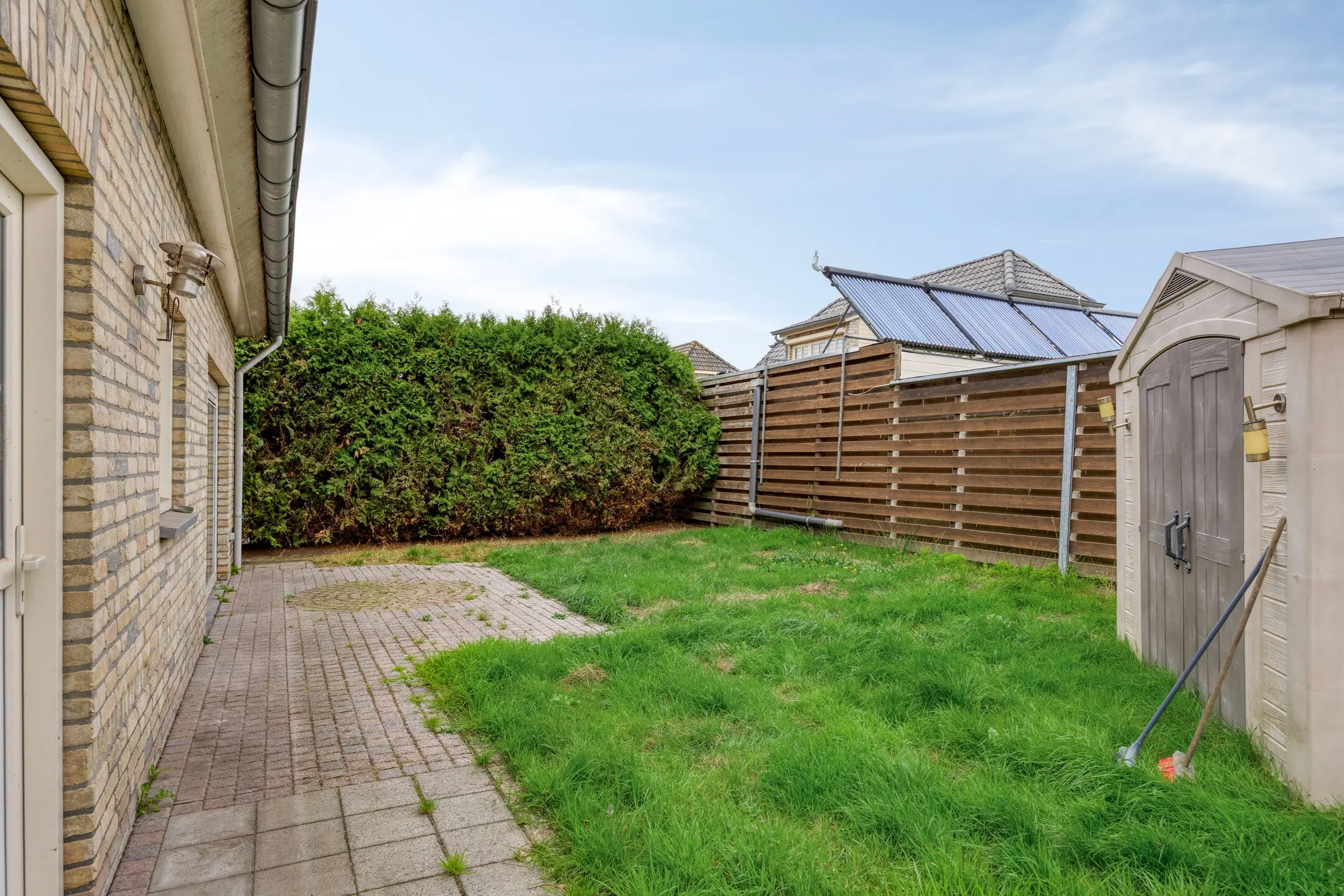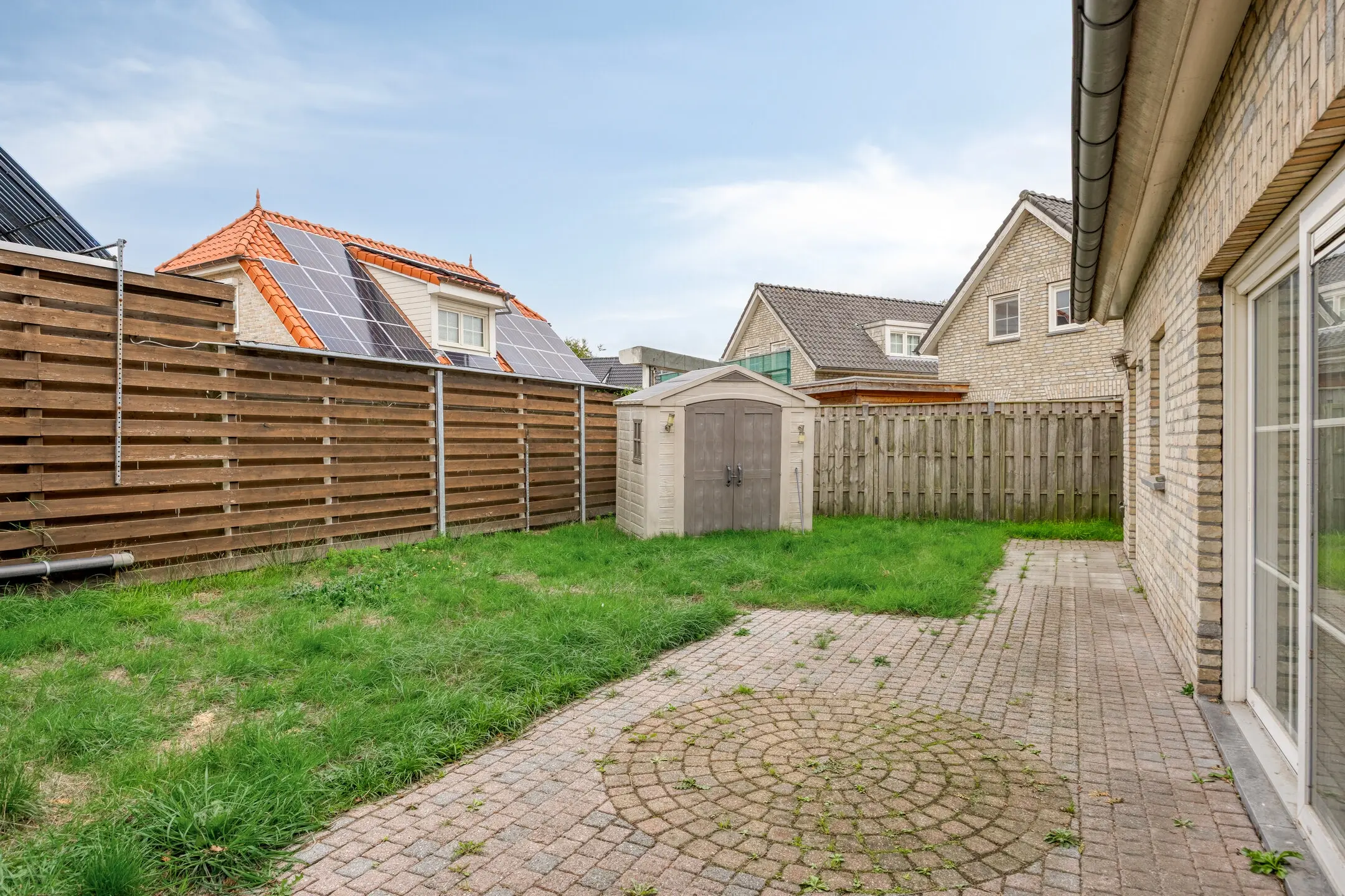 De tuin is nu ingericht met bestrating en een gazon, maar biedt volop mogelijkheden om geheel naar eigen smaak te worden vormgegeven.