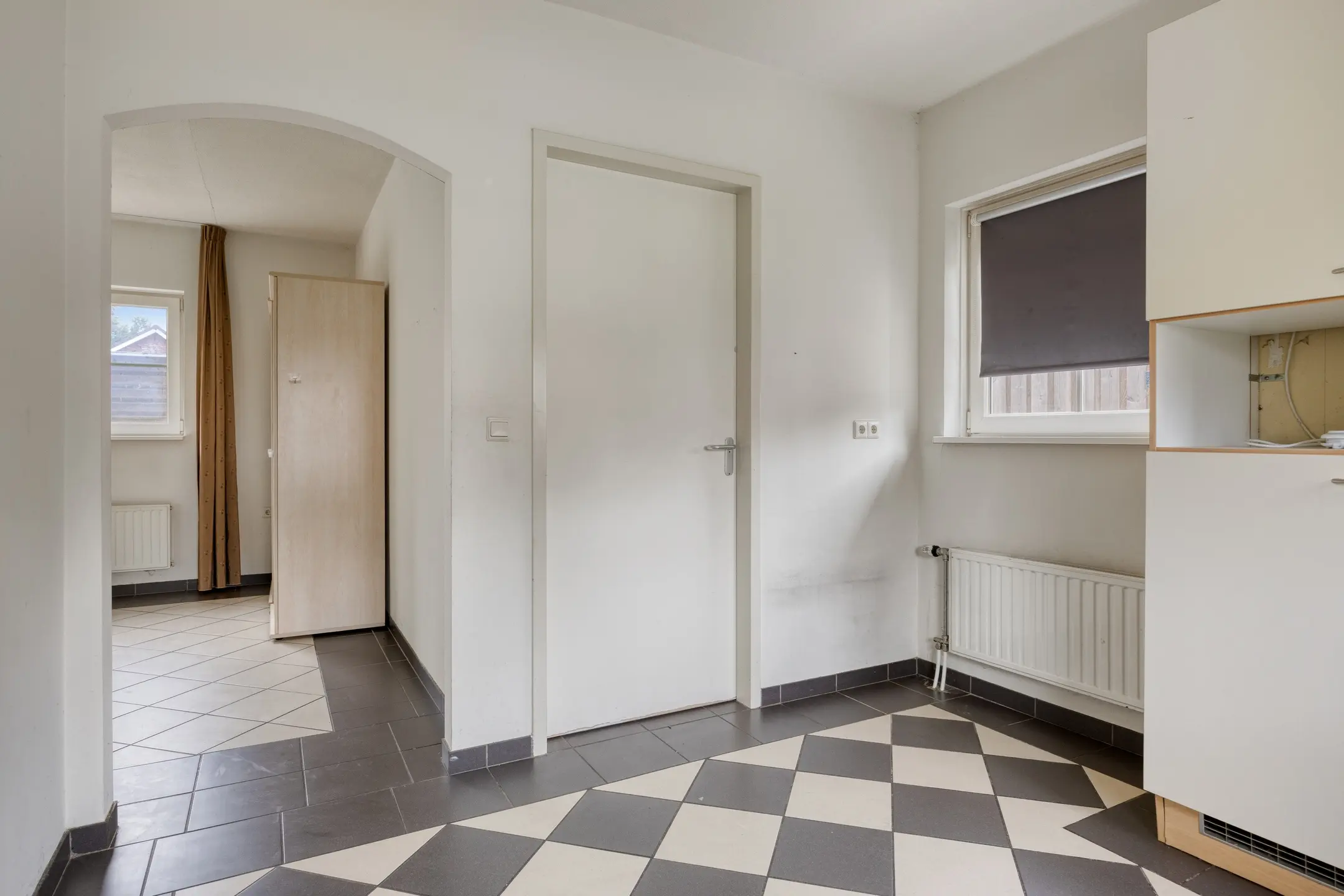 De praktische bijkeuken is ideaal voor het plaatsen van een was-droogcombinatie en een extra koelkast. Tevens is hier de cv-ketel geplaatst en heeft u vanuit de bijkeuken direct toegang tot de achtertuin.