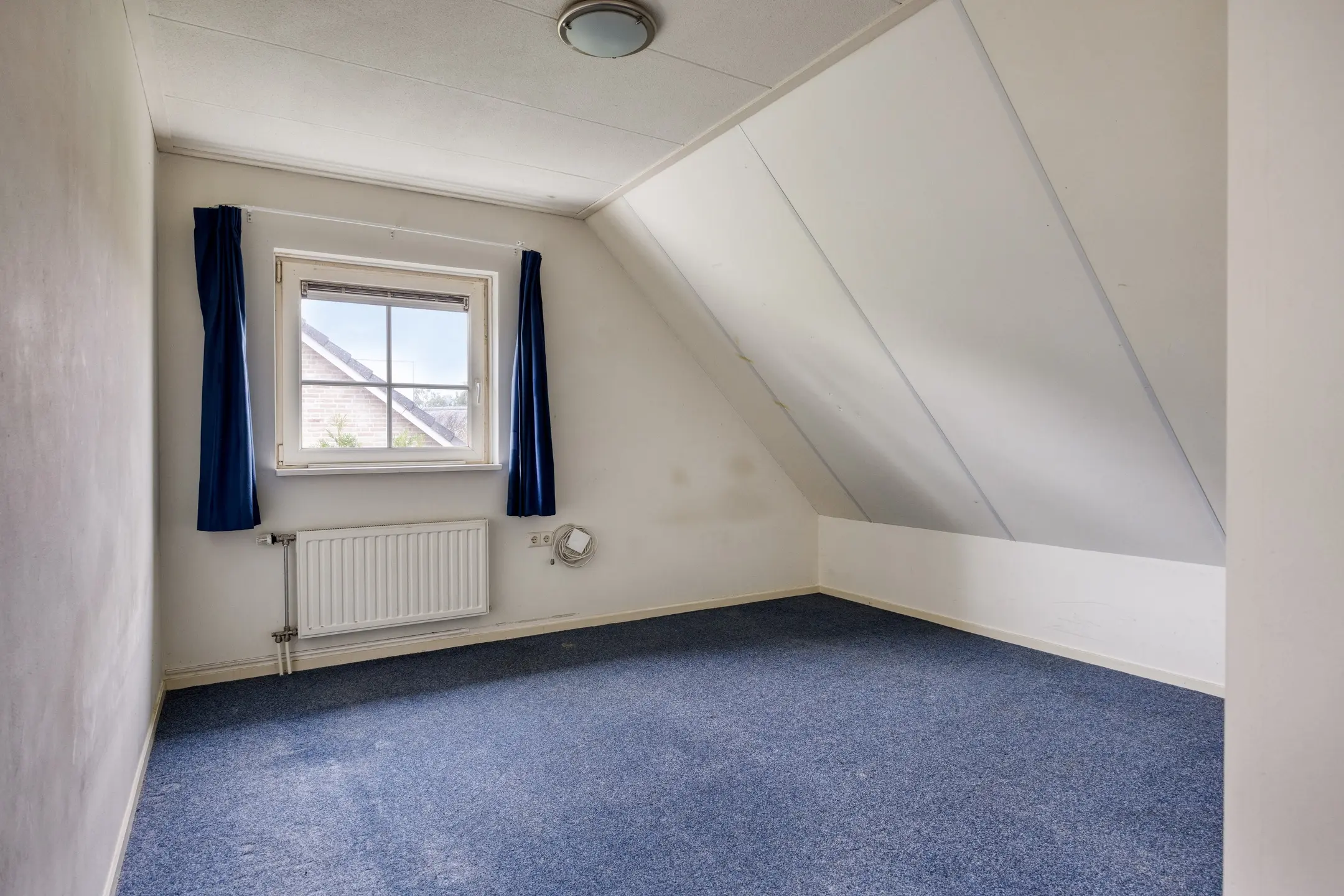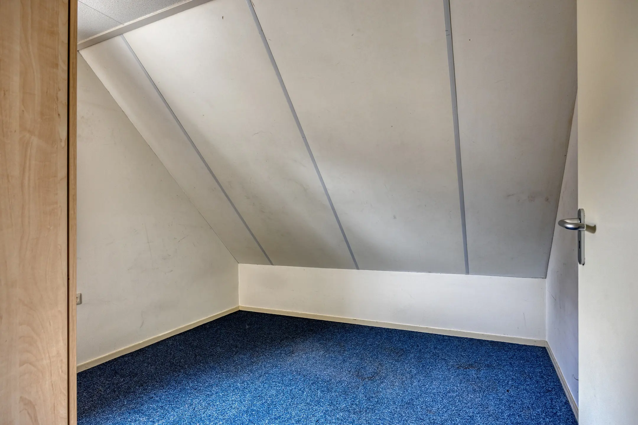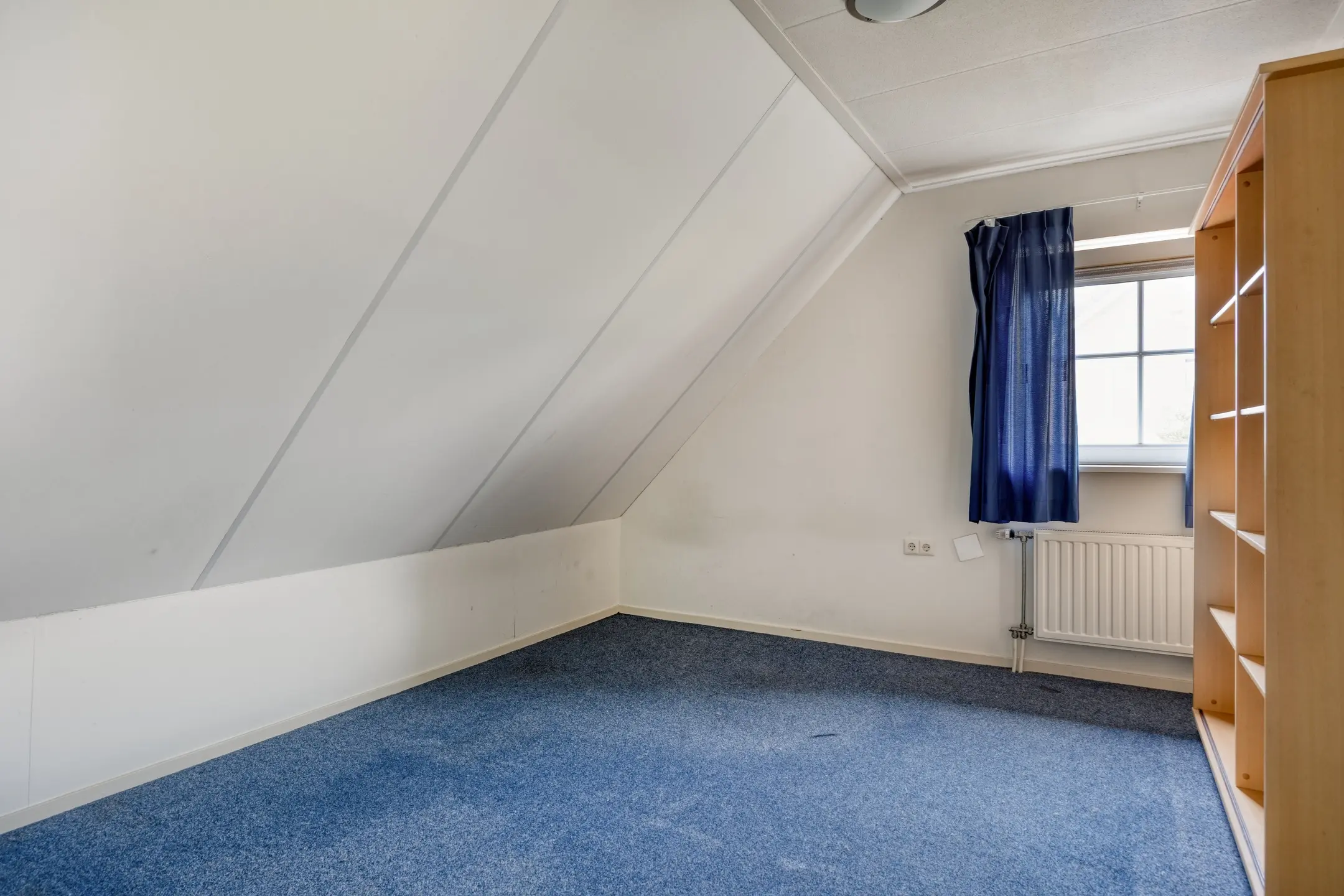 Door de schuine wanden hebben de slaapkamers een speels karakter, terwijl de ruimte toch praktisch in te delen blijft.