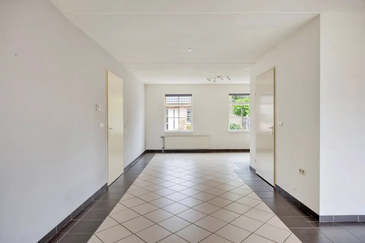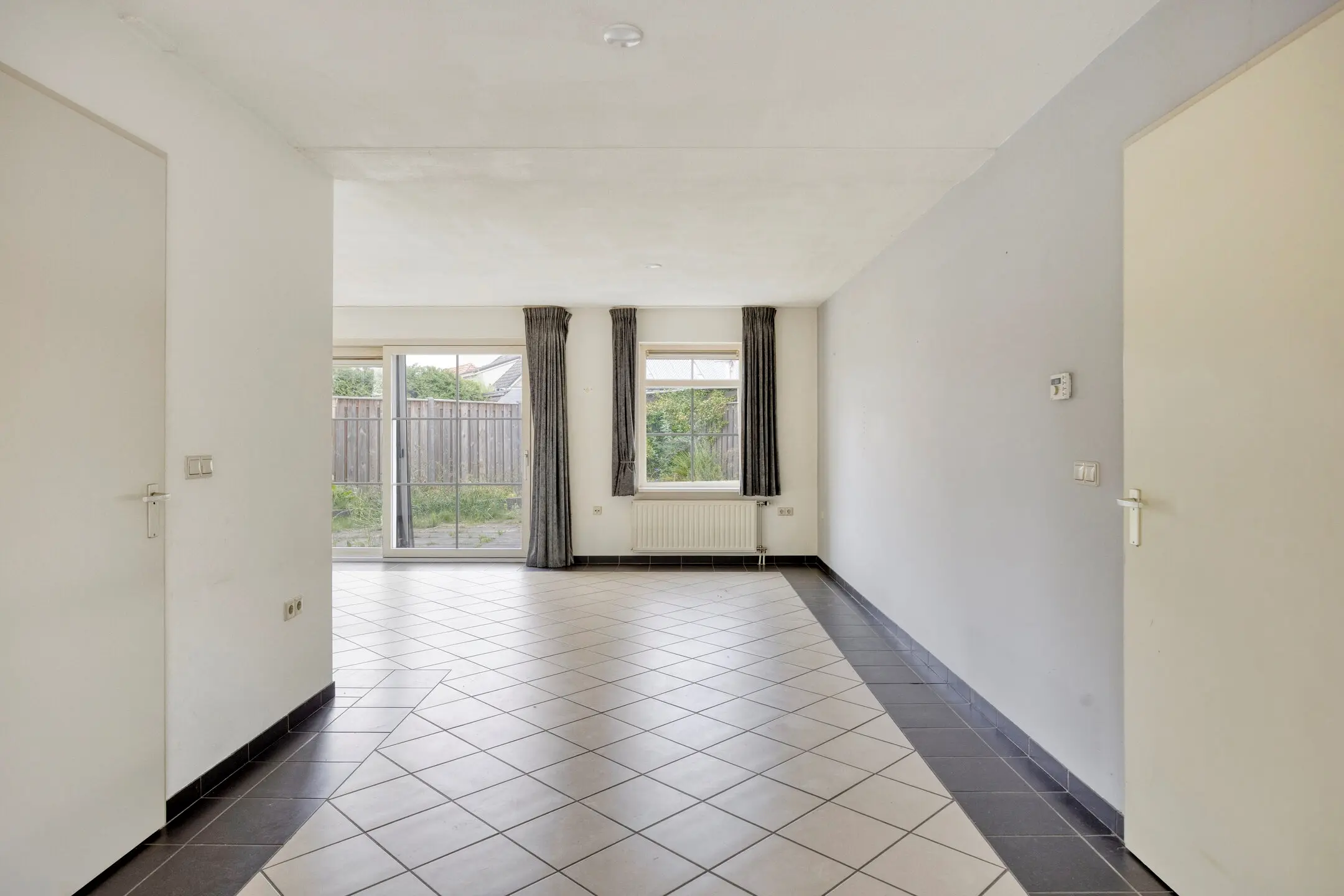 Licht en ruimte! Dankzij de meerdere raampartijen en grote schuifpui is de benedenverdieping heerlijk licht en ruimtelijk. De schuifpui geeft direct toegang tot het aangrenzende terras en de tuin. De gehele benedenverdieping is afgewerkt met een lichte tegelvloer en de wanden zijn gestuct.