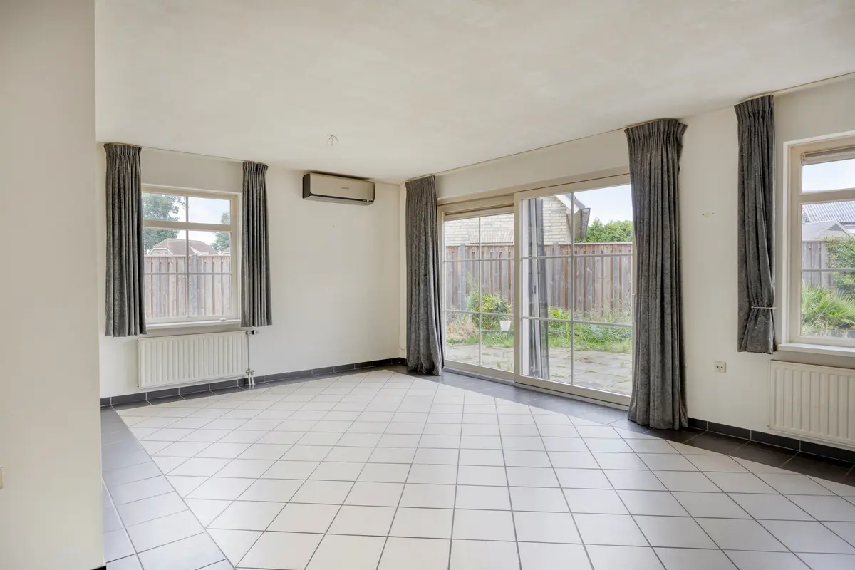 - Royale woonkamer met meerdere raampartijen en grote schuifpui naar de tuin