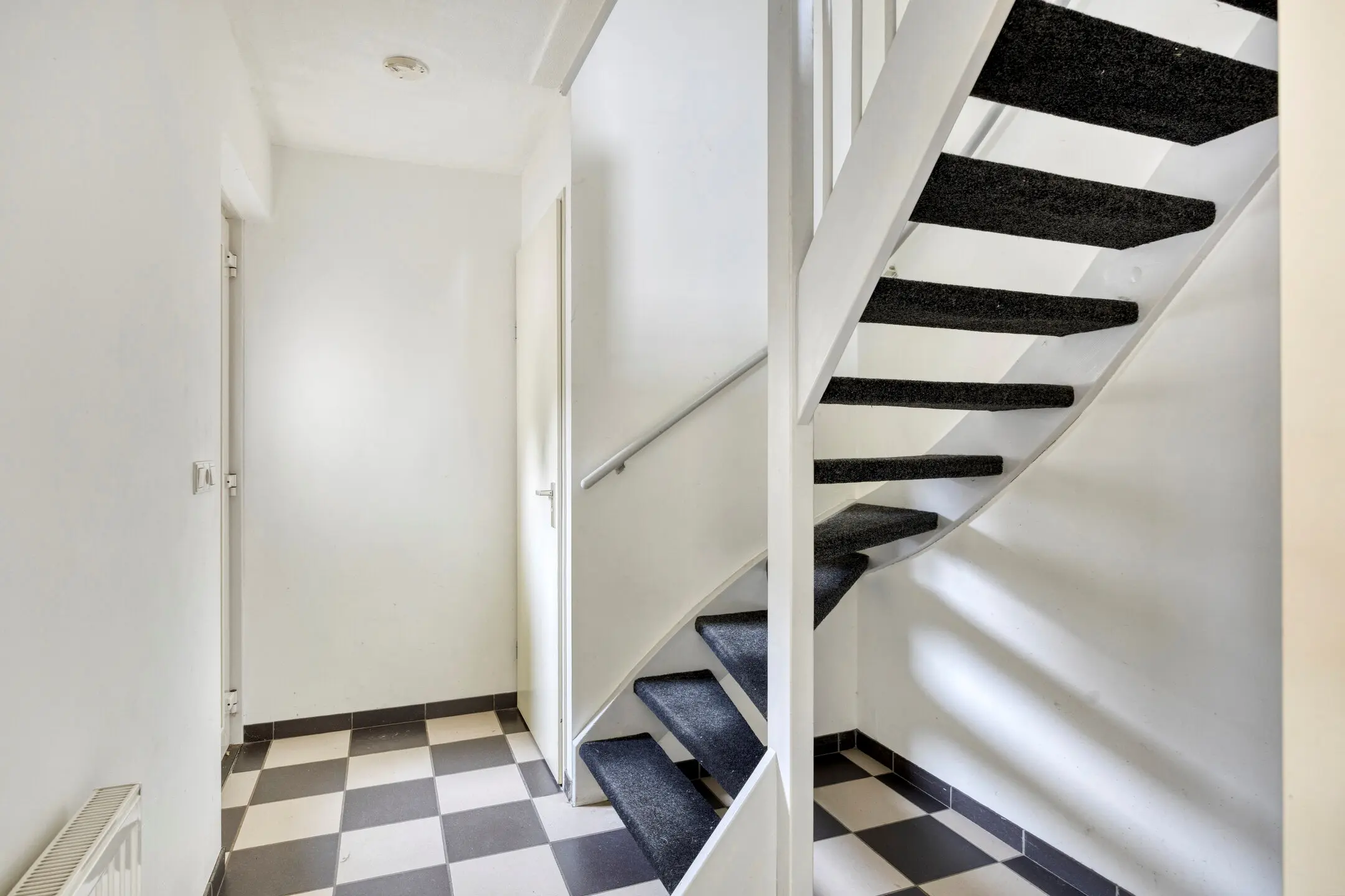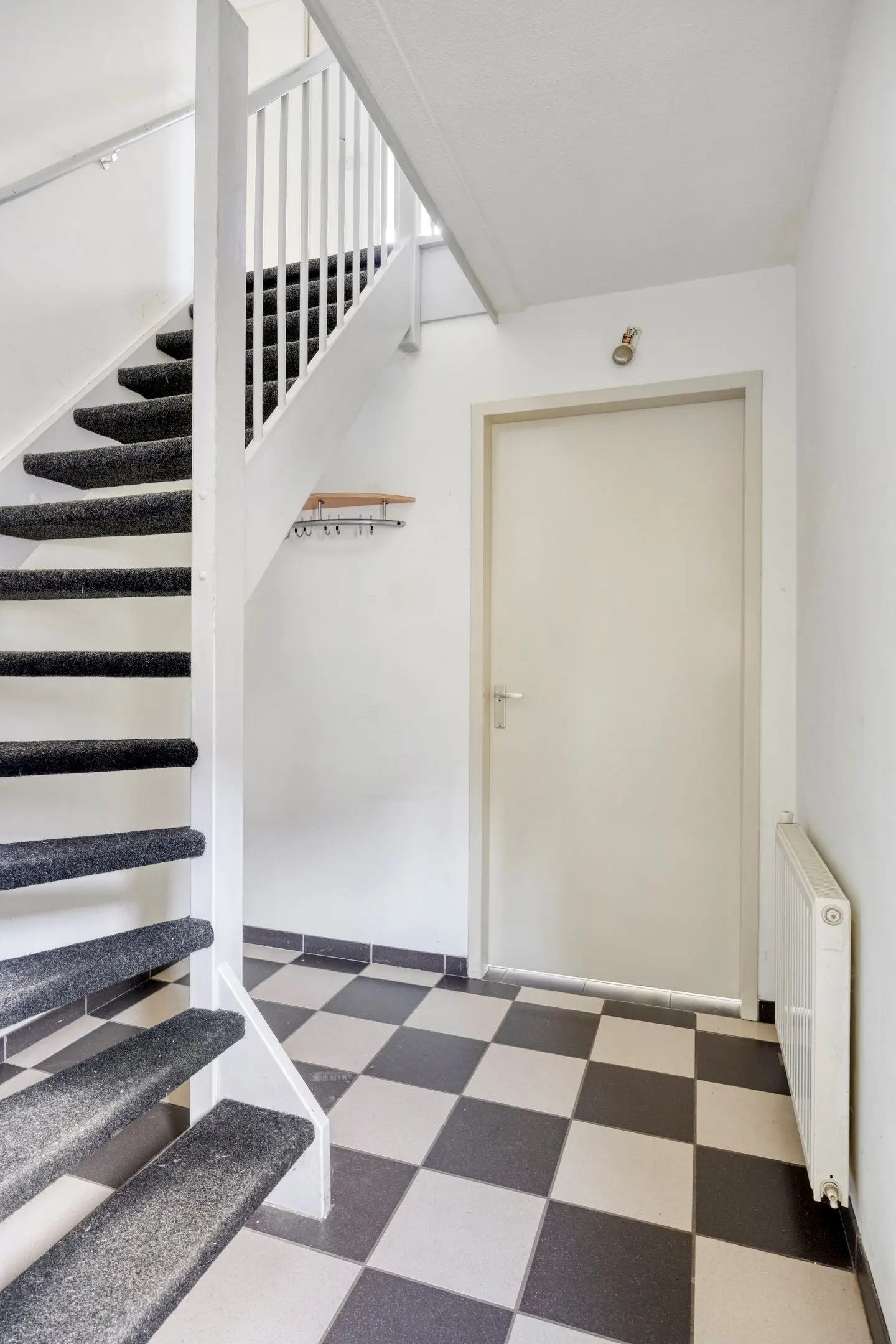 In de ruime ontvangsthal bevindt zich een open trap naar de eerste verdieping. Vanuit de hal heeft u toegang tot de nette toiletruimte en de woonkamer.