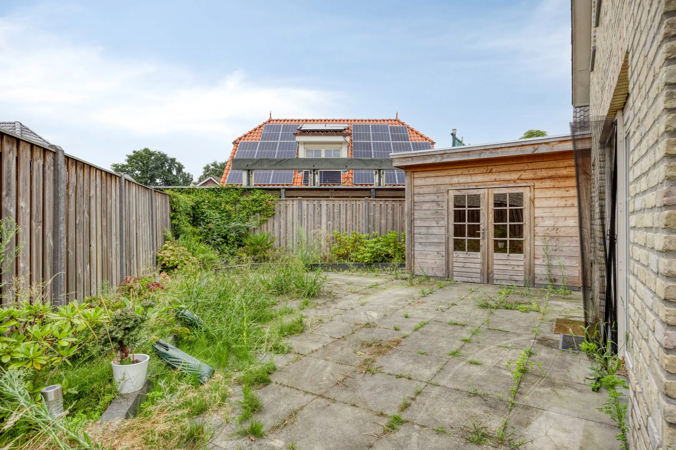 De achtertuin biedt een berging en voldoende ruimte om buiten te verblijven.