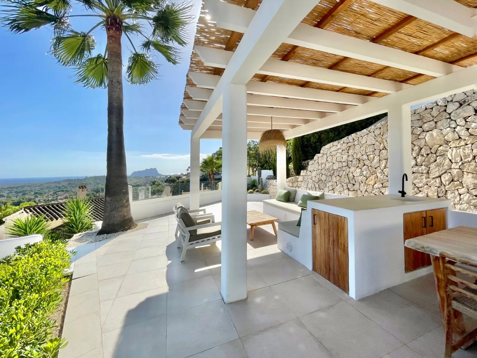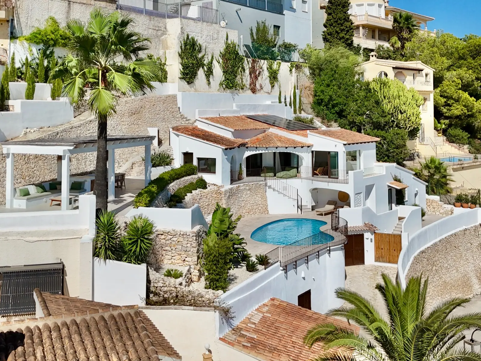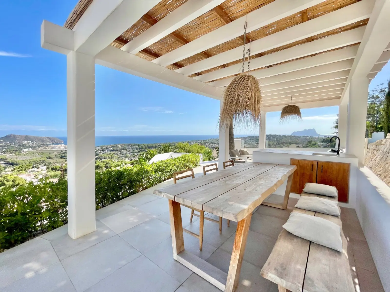 Ontdek deze instapklare luxe villa te koop in Moraira, gelegen in de populaire wijk Benimeit, op een van de mooiste locaties aan de Costa Blanca. De zuid gerichte woning biedt een indrukwekkend panoramisch uitzicht over de Middellandse Zee, de groene bergen en de kustlijn, en combineert modern comfort met mediterrane details. Dit alles op een paar auto-minuten van het gezellige centrum van Moraira. Deze recent gerenoveerde villa in Moraira is tot in de puntjes afgewerkt met hoogwaardige materialen en oog voor detail. De villa is uitgerust met centrale verwarming middels een warmtepomp, airconditioning, zonnepanelen, de beste kwaliteit ramen en deuren en beschikt dan ook over energiecertificaat B wat een laag energieverbruik garandeert.