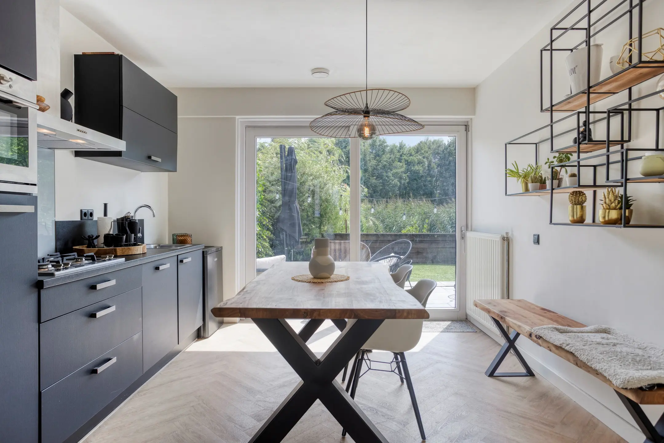 De lichte en royale woonkamer met veel raampartijen is voorzien van een visgraatvloer. Mede door de ligging van de woonkamer heeft u een prachtig en vrij uitzicht. De ramen aan de achterzijde zijn voorzien van screens.