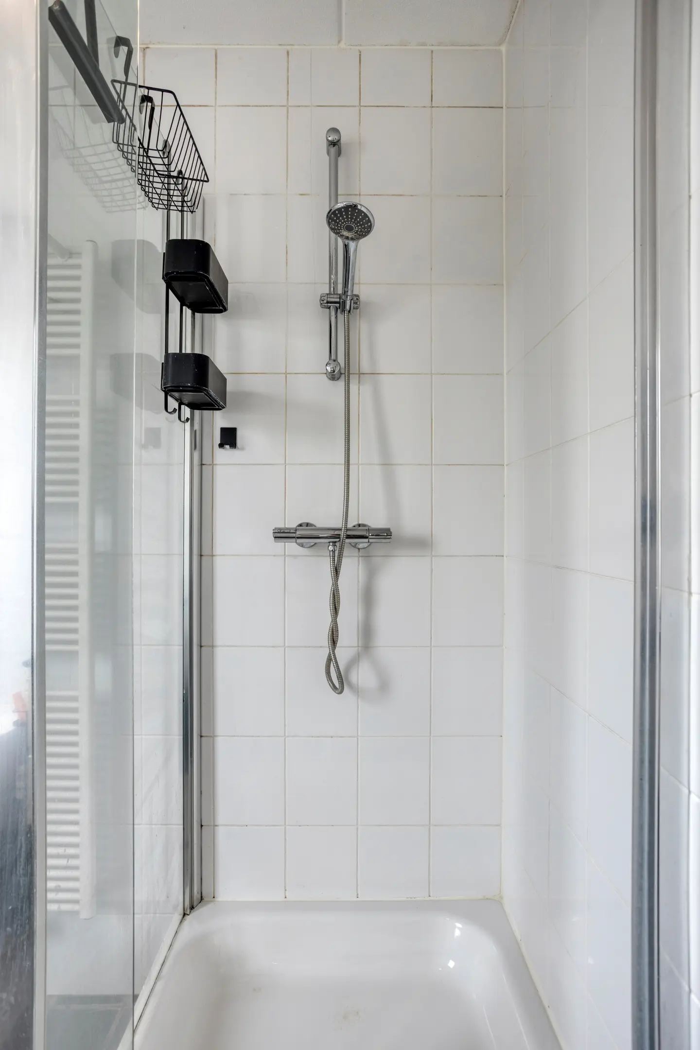 De vloer is tevens afgewerkt met een visgraatvloer en de wanden zijn gestuct.